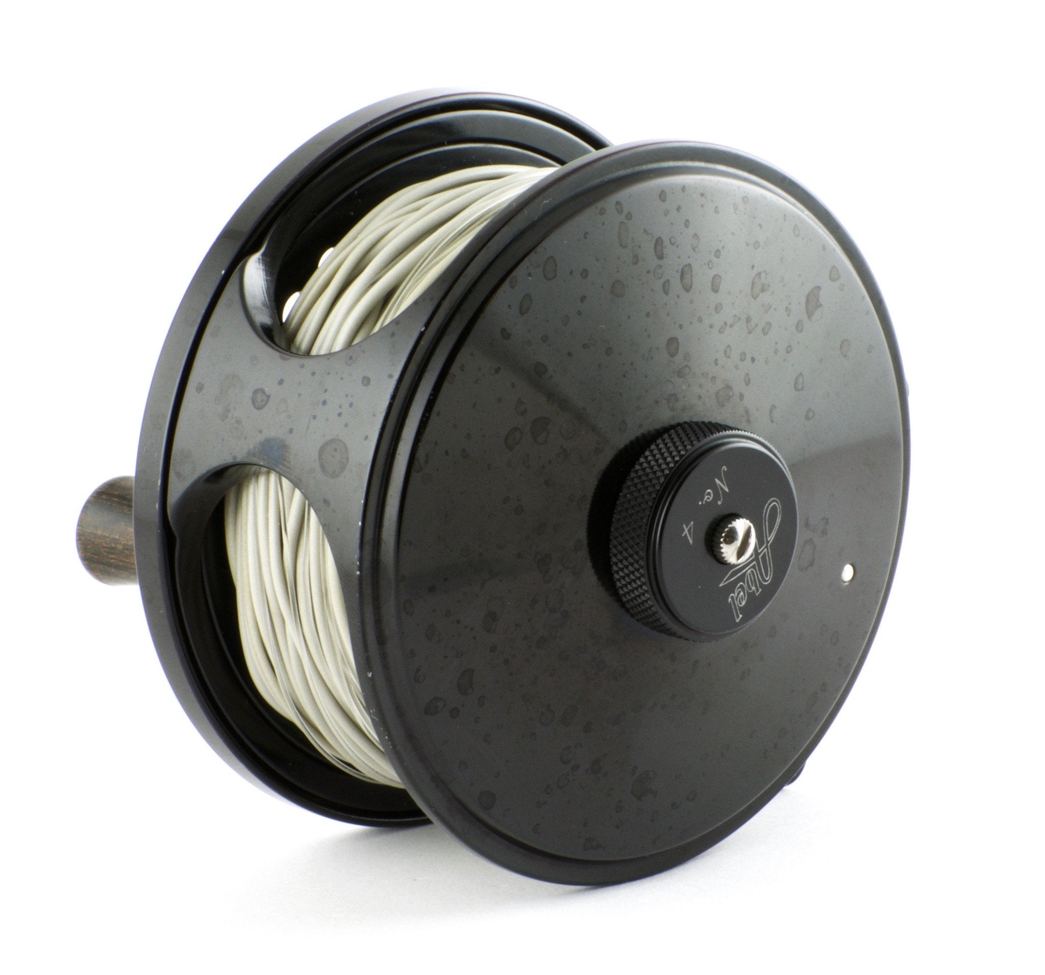 For sale here we have an Abel No. 4 fly reel. Reel is in excellentcondition, although it could use a good cleaning. Made in USA. The drag is smooth and strong. Reel set up for RHW. Abel reels are known for their quality and craftsmanship. The reels are the perfect intersection of classic reel design with modern innovations. Reel weighs 15.75 oz. with line and backing. Diameter 3 7/8". Rated for a 12 or 13wt rod but would also accept a lighter line.Reel comes with line and backing. Reel also comes with leather reel pouch, and Abel box. Serial no. 516