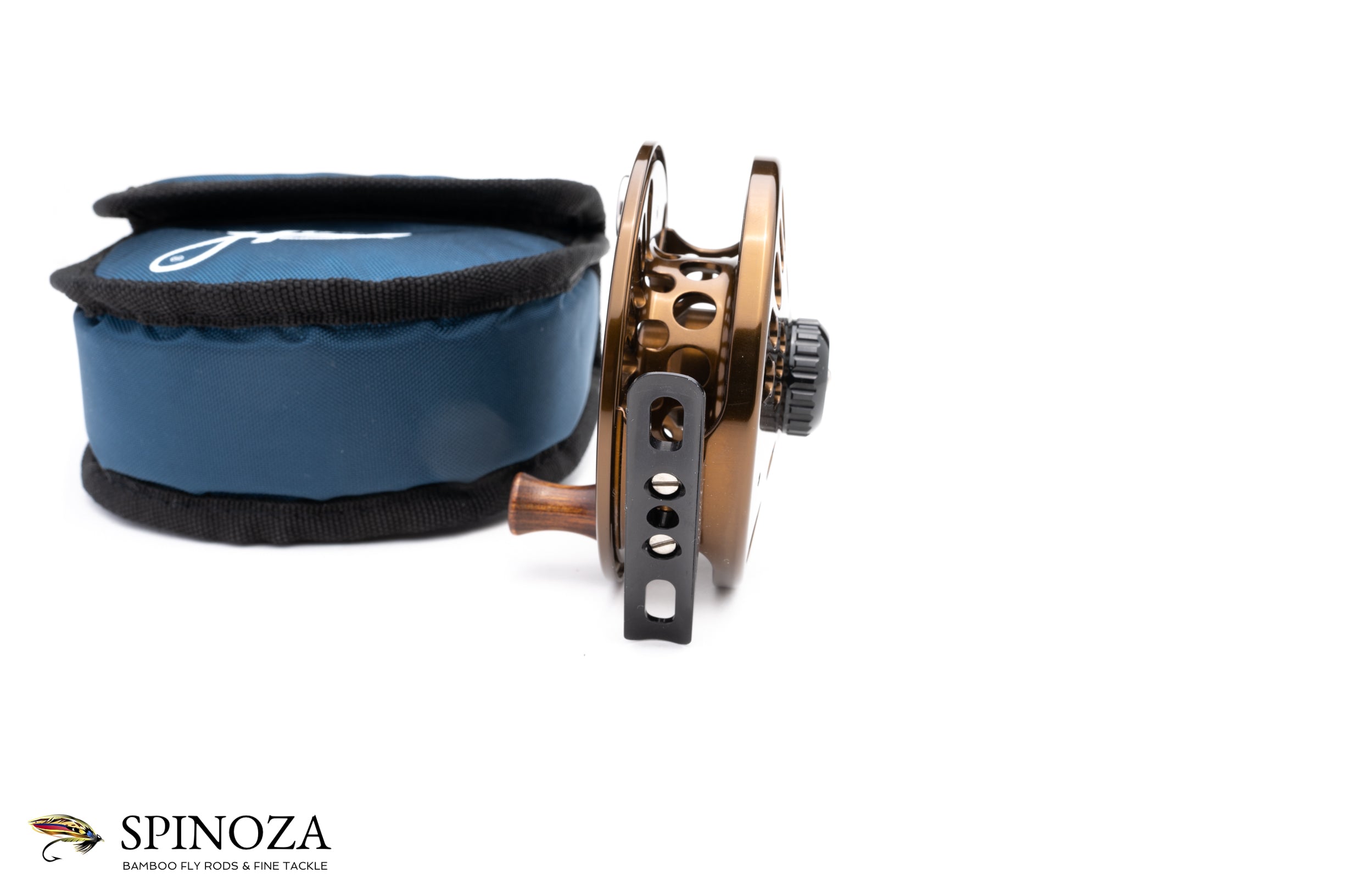 A nice Abel Super 6 N fly reel, 3 5/8" diameter and set up for RHW (though convertible). Mint condition. Large arbor design with a Bronze finish and heavy porting to reduce weight. Serial #23420. Comes in the original Abel cordura pouch.