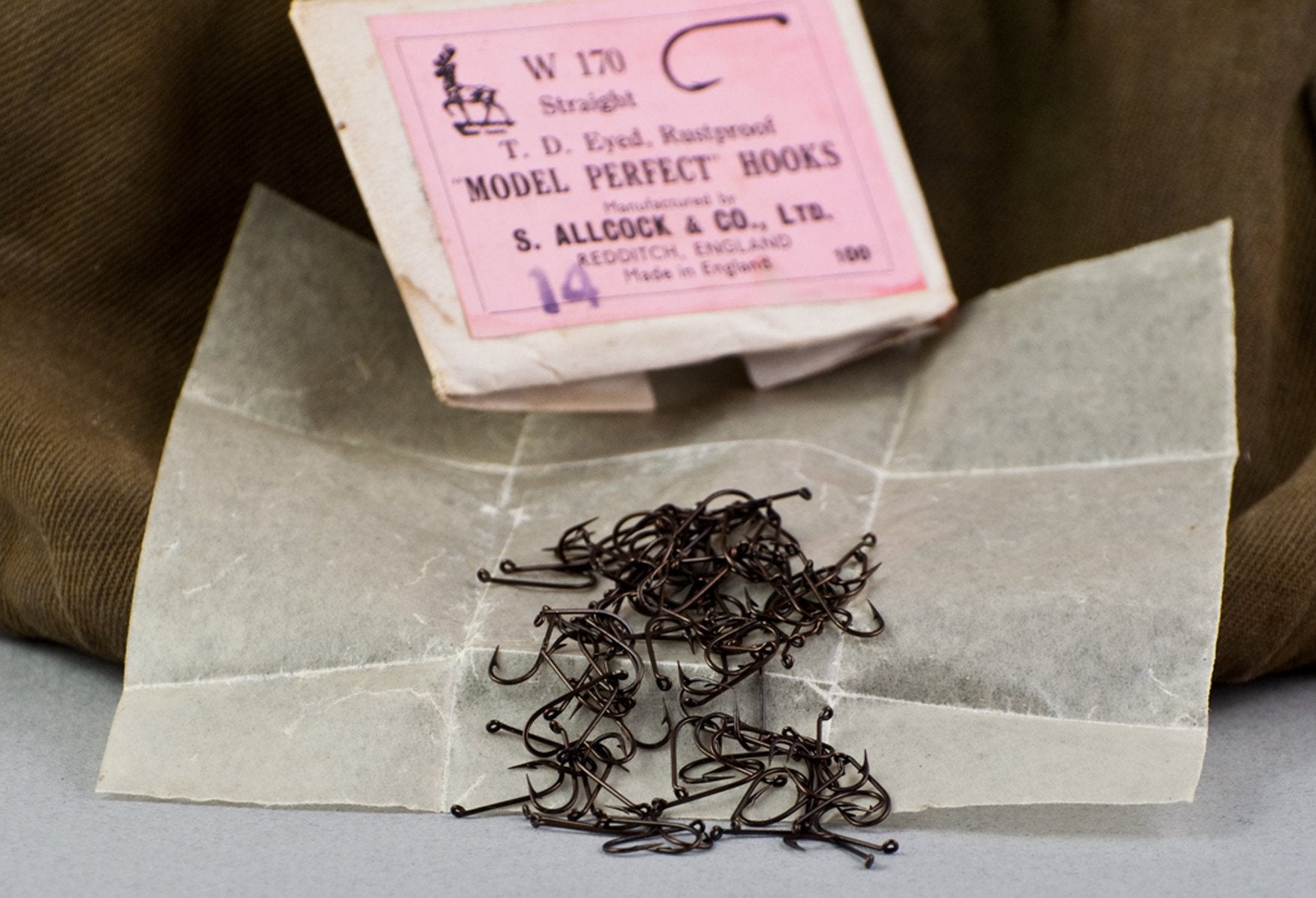 For sale here is one 100 qty package of size 14 dry fly hooks - Model W 170 from S. Allcock & Co. Ltd. of Redditch England. All original. See photos for more details. I have more packs of these as well as some Ray Bergman hooks. These hooks plus many other items I will be selling come from the estate of Fran Betters. The last photo shows how many Allcock hooks I have for sale - each of them will not be listed separately unless they are a different model/size as this one, so please inquire if you'd like to buy more than one.