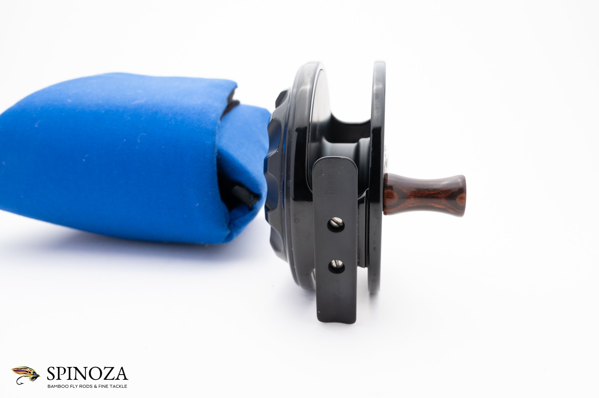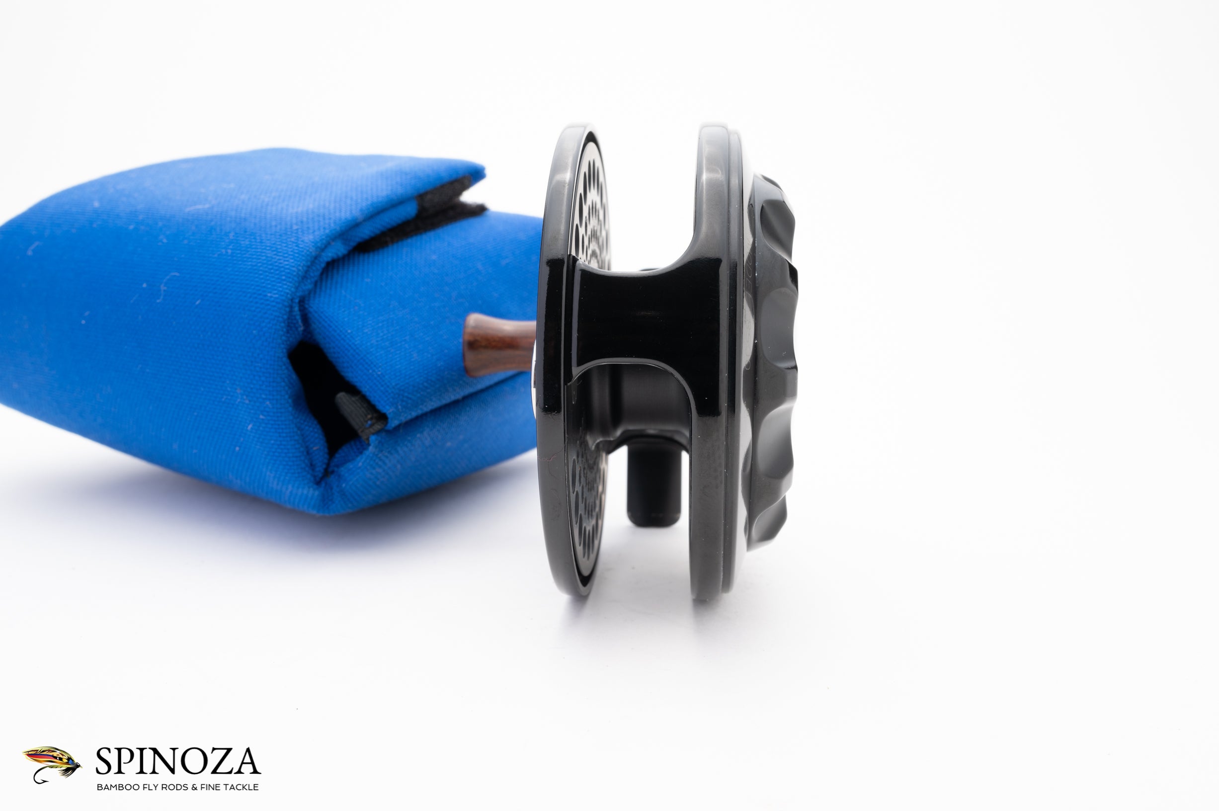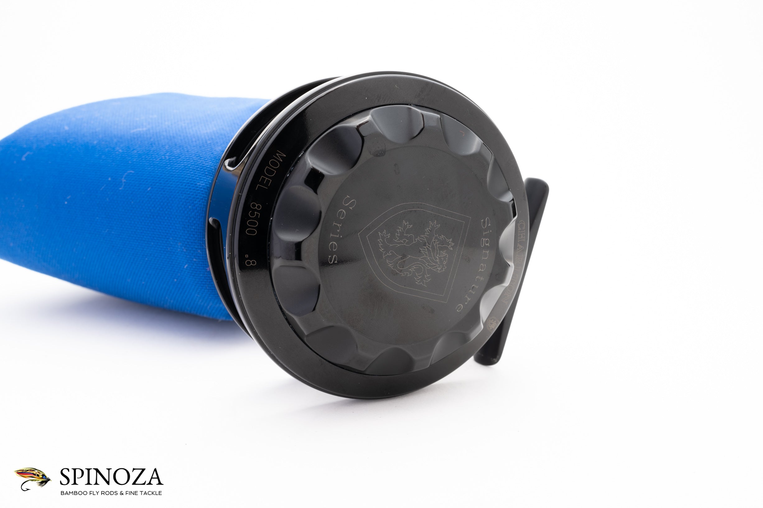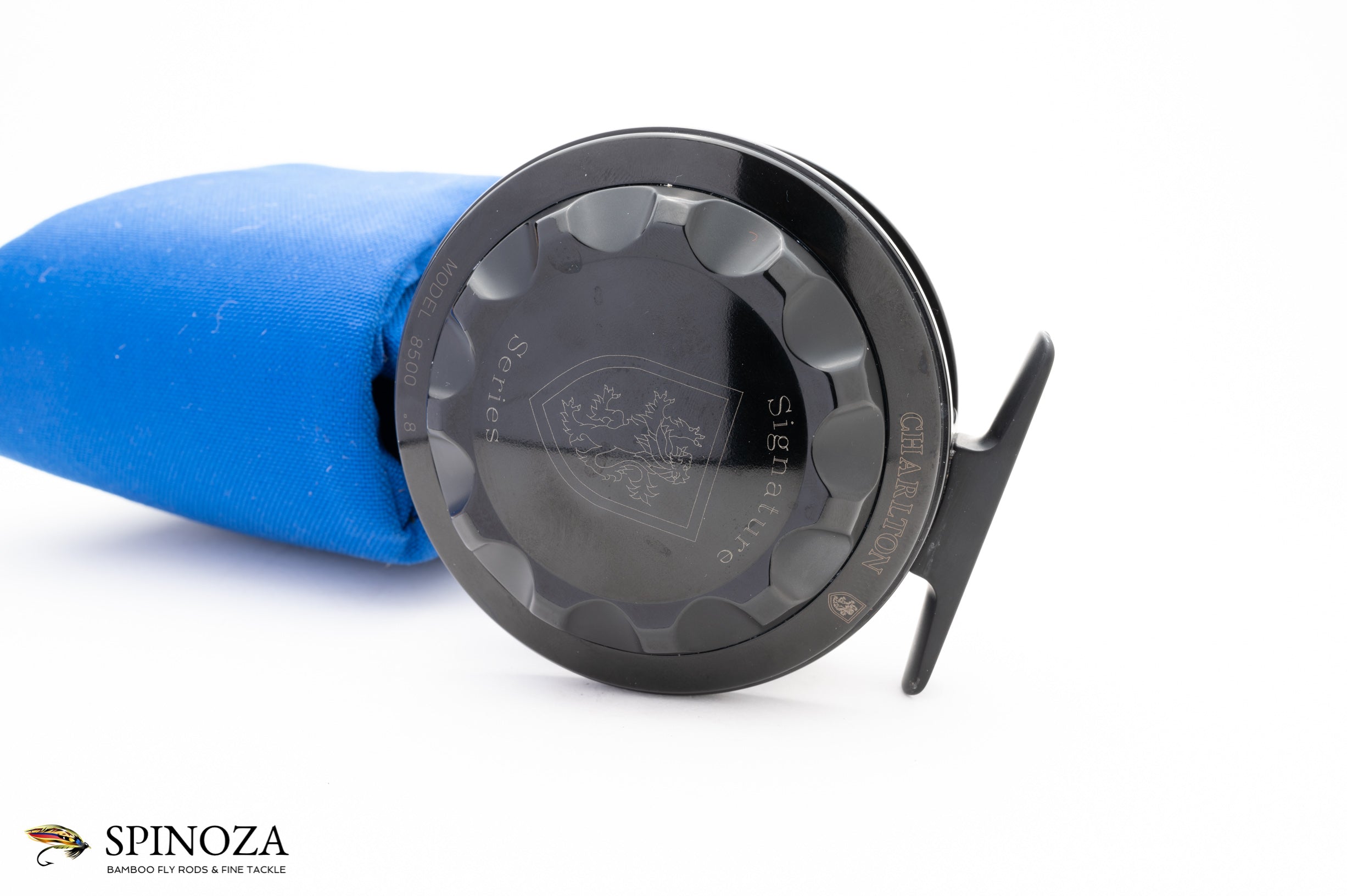 An excellent Charlton 8500 Signature Series 0.8 fly reel in LHW. Mint condition. Serial number SS9485. The 0.8 spool can fit a WF8+150 30# or a WF10+160 20#. Meticulously coated with a high-polished, deep black Type III anodized finish with matte reliefs. Fully machined from high-grade aluminum and steel. Has a sealed, self-adjusting carbon fiber disk drag which includes over 9-square inches of surface area and boasts five oversized aerospace precision bearings. A large arbor design gives the angler over 1 foot of line retrieve per revolution. Comes with its original blue reel pouch.