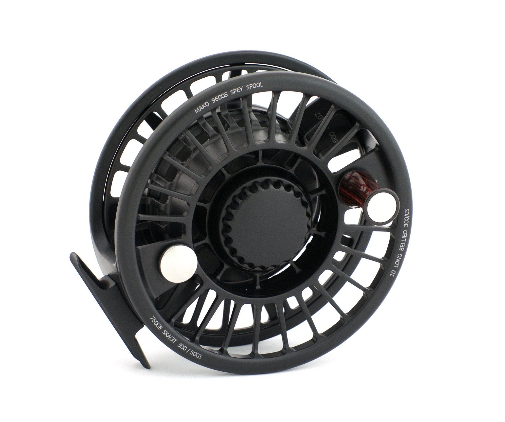 For sale here is a Charlton Mako Spey Reel Model 9600S with stealth spool. Right hand retrieve. Mint unused condition. 5" diameter and 13.8 oz. Comes with original box, badge, pouch, and paperwork. Also comes with a spare spool in an unopened box.
