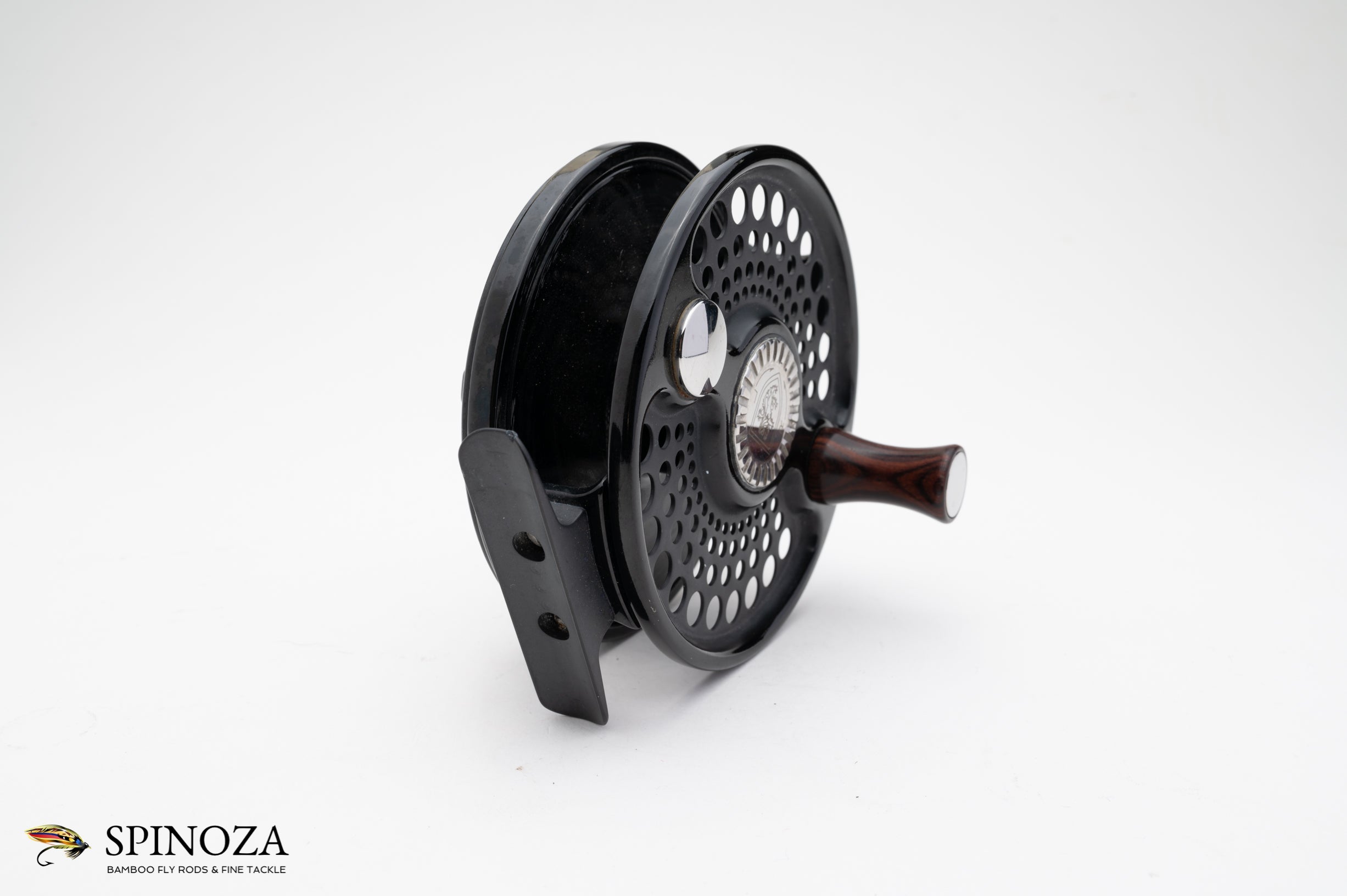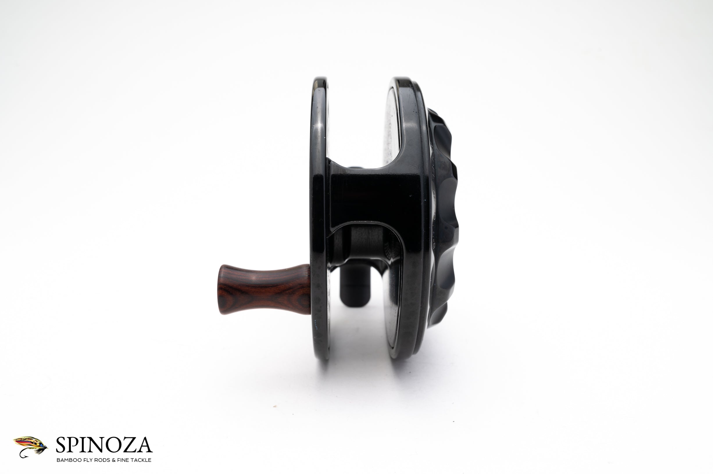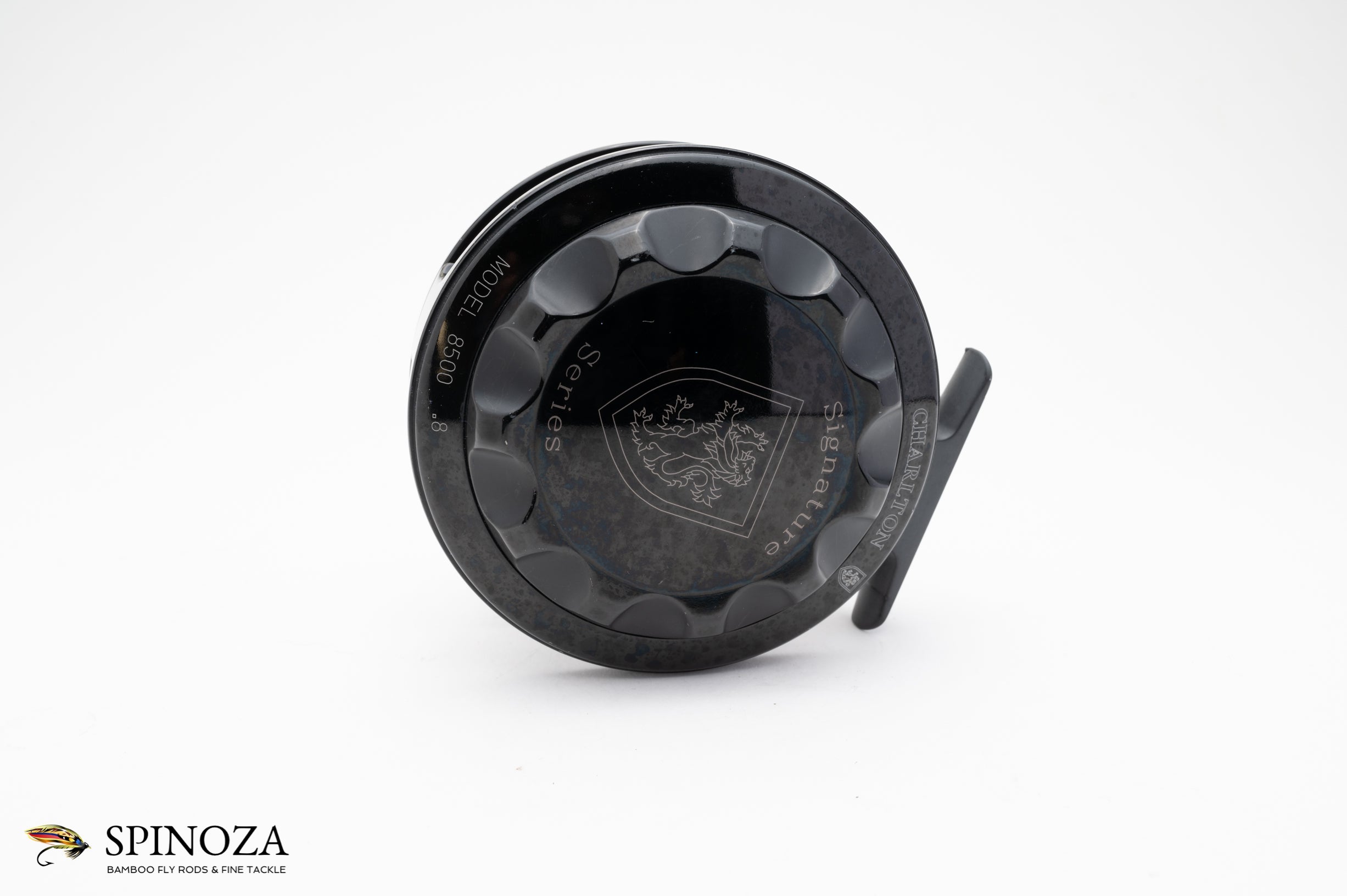 An excellent Charlton 8500 Signature Series 0.8 fly reel in LHW. Excellent used condition with some very minor rubbing in one area on the rims and some handling marks on the outer part of the knob and counterbalance. There is also a slight bit of cosmetic splotchiness to the finish from saltwater exposure, though rather minor. Serial number SS10382. The 0.8 spool can fit a WF8+150 30# or a WF10+160 20#. Meticulously coated with a high-polished, deep black Type III anodized finish with matte reliefs. Fully machined from high-grade aluminum and steel. Has a sealed, self-adjusting carbon fiber disk drag which includes over 9-square inches of surface area and boasts five oversized aerospace precision bearings. A large arbor design gives the angler over 1 foot of line retrieve per revolution. No bag.
