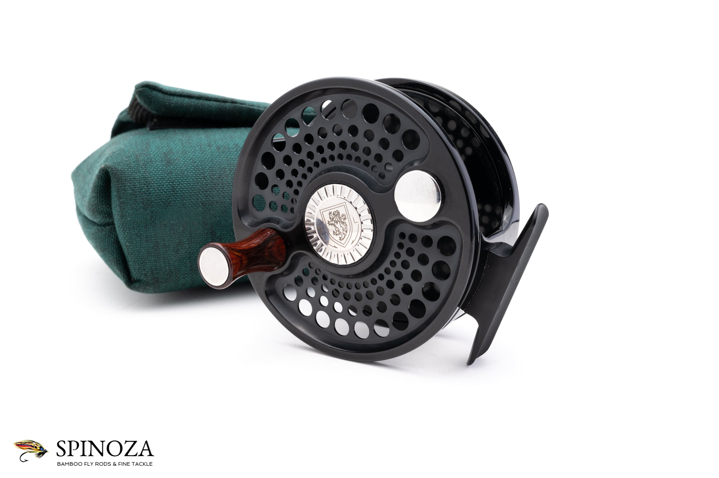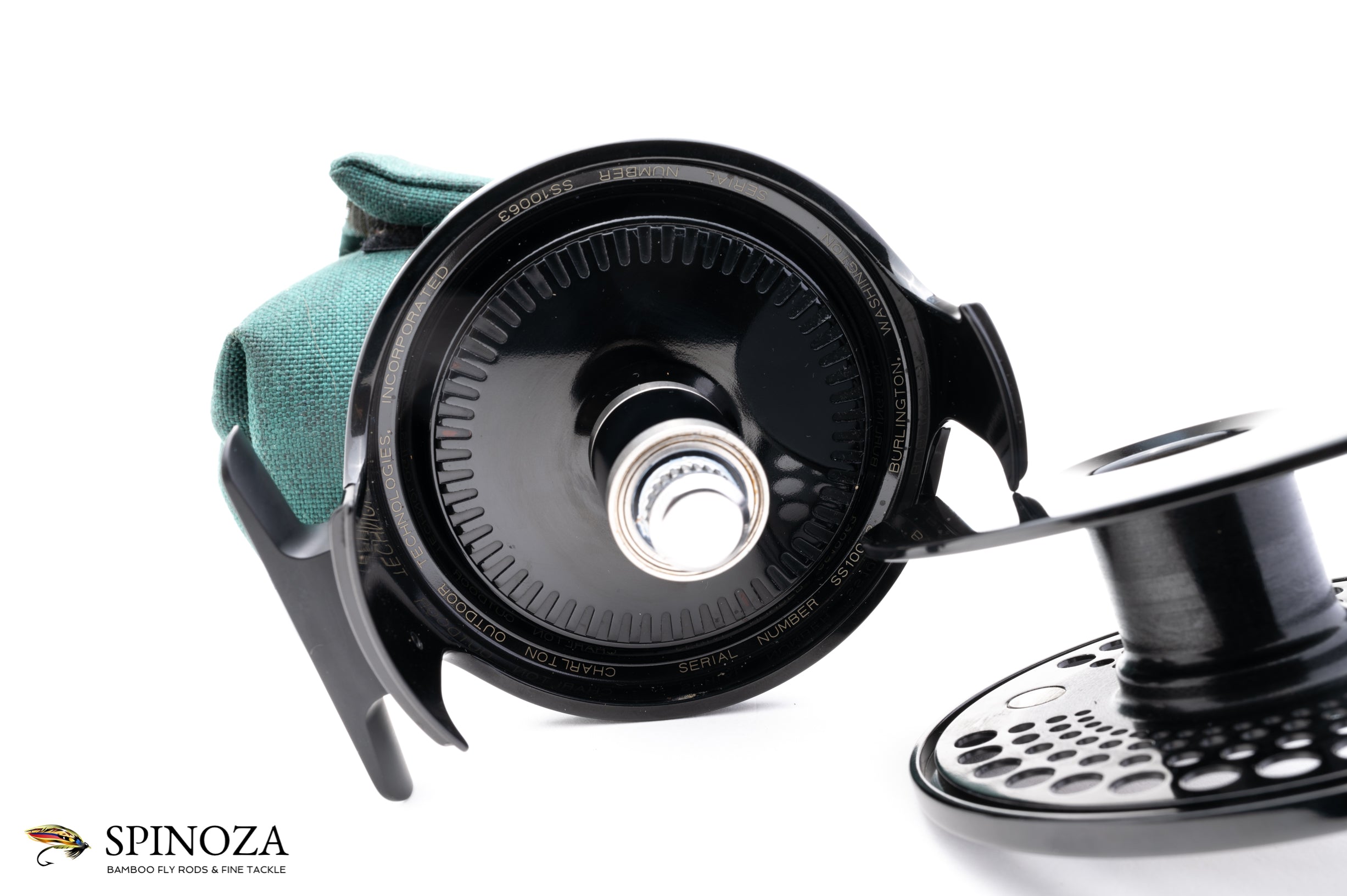 A superb Charlton 8500 Signature Series 1.2 fly reel in mint condition. LHW. Carbon fiber sealed drag. Designed for 10-12 wt lines. Catalog weight is 10 oz. Meticulously coated with a high-polished, deep black Type III anodized finish with matte reliefs. Fully machined from high-grade aluminum and steel. Has a sealed, self-adjusting carbon fiber disk drag which includes over 9-square inches of surface area and boasts five oversized aerospace precision bearings. A large arbor design gives the angler over 1 foot of line retrieve per revolution. A classic bluewater reel that is indestructible and a match for whatever you can throw its way. Comes with original green cordura reel pouch.