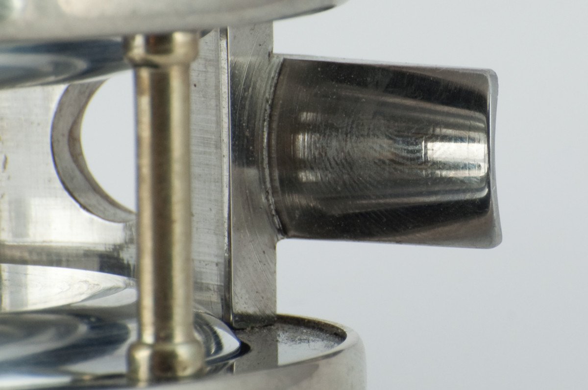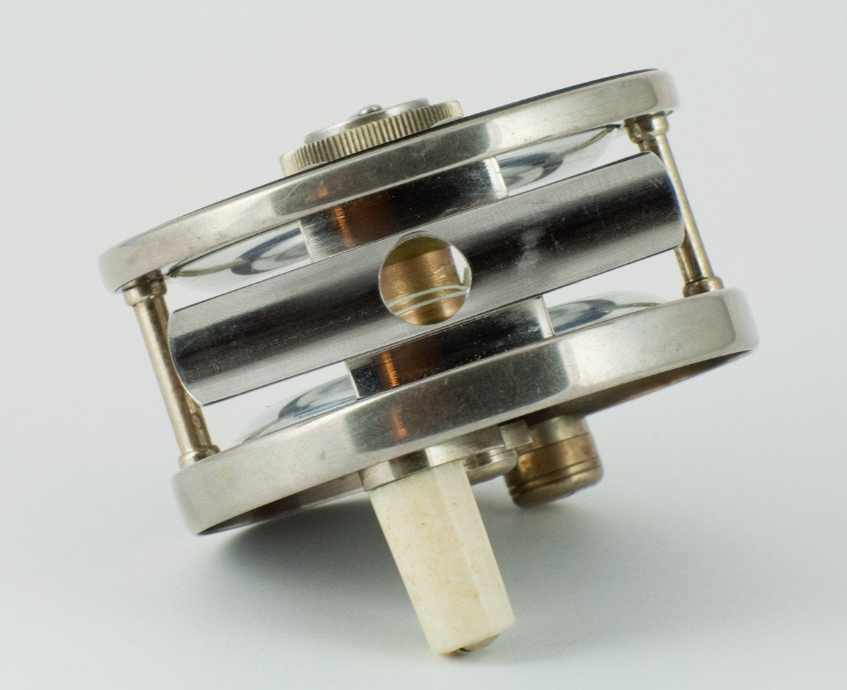 For sale here is a bench-made reel by David Edel in excellent condition. The reel is designed in the classic style of an Edward Vom Hofe Perfection reel. It's a single action reel and has an extremely effective back-plate mounted adjustable drag, from the lightest to the heaviest settings. The heaviest setting you would only need for the largest trout you could locate on the planet, trust me! The reel has a 3" diameter and 15/16" wide spool. It also includes a click switch on the winding plate that enables silent drag operation. The reel is mostly made of nickel silver with an aluminum spool and only the best quality ebonite side plates. The reel is set up for left hand retrieve. Comes with a custom A.E. Nelson reel case. Mr. Nelson is best known for his custom leathered creels, and was commissioned by Edel to make these high quality cases for his reels.