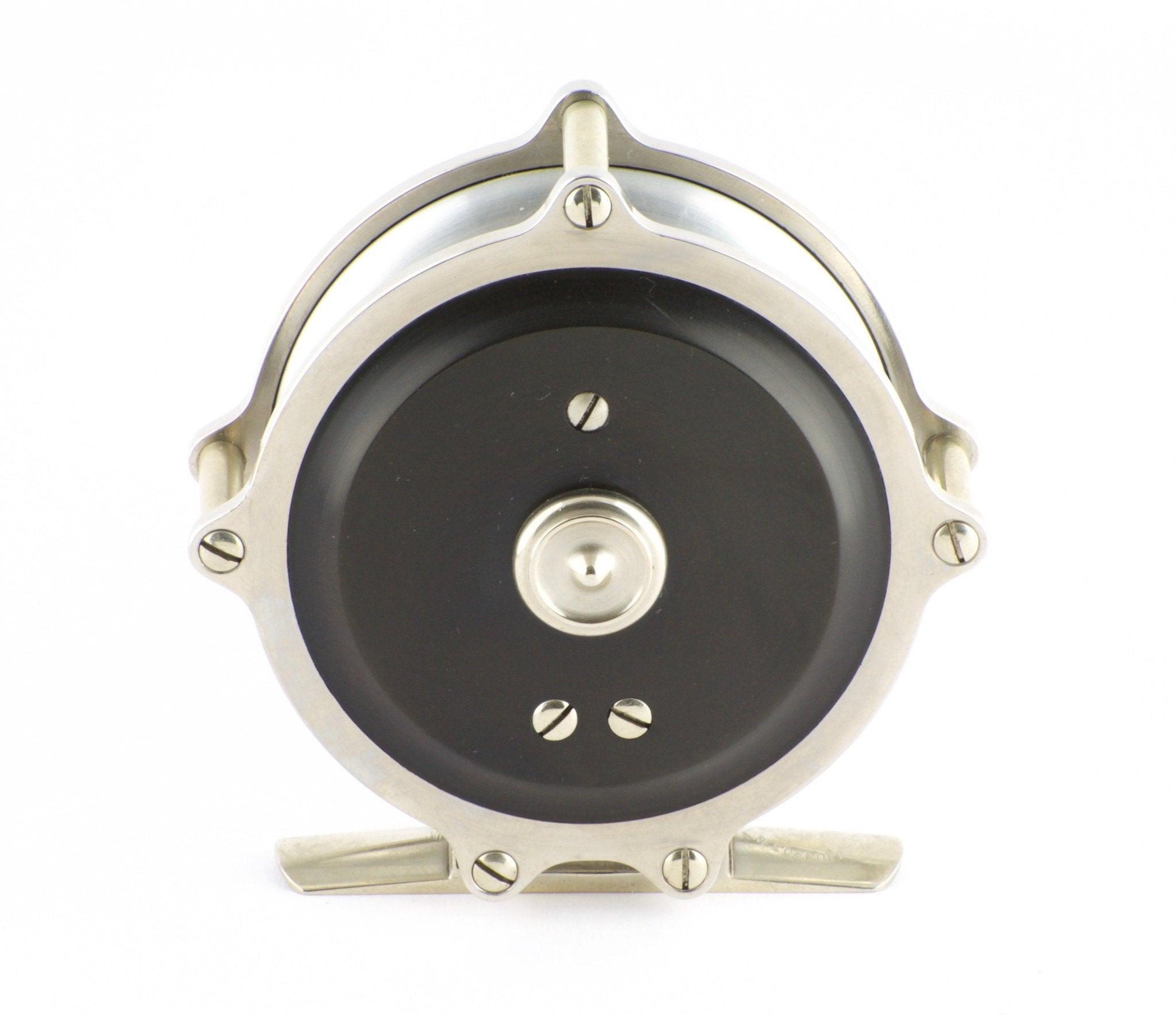 For sale here is a bench-made reel by David Edel, his rendition of the Philbrook and Paine reel. Unused, as-new condition. Fixed check. The reel has a 3 1/4" diameter pillar to pillar, a 5/8" wide spool, and weighs 7 3/4 oz. Fixed, non-adjustable click drag. Nickel copper rims, nickel silver screws, counterbalance, pillars. Stainless steel foot. Aluminum spool with bronze arbor. High-quality ebonite side plates.The reel is set up for left hand retrieve. An amazing reel.....you will not be disappointed.
