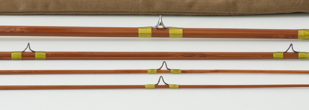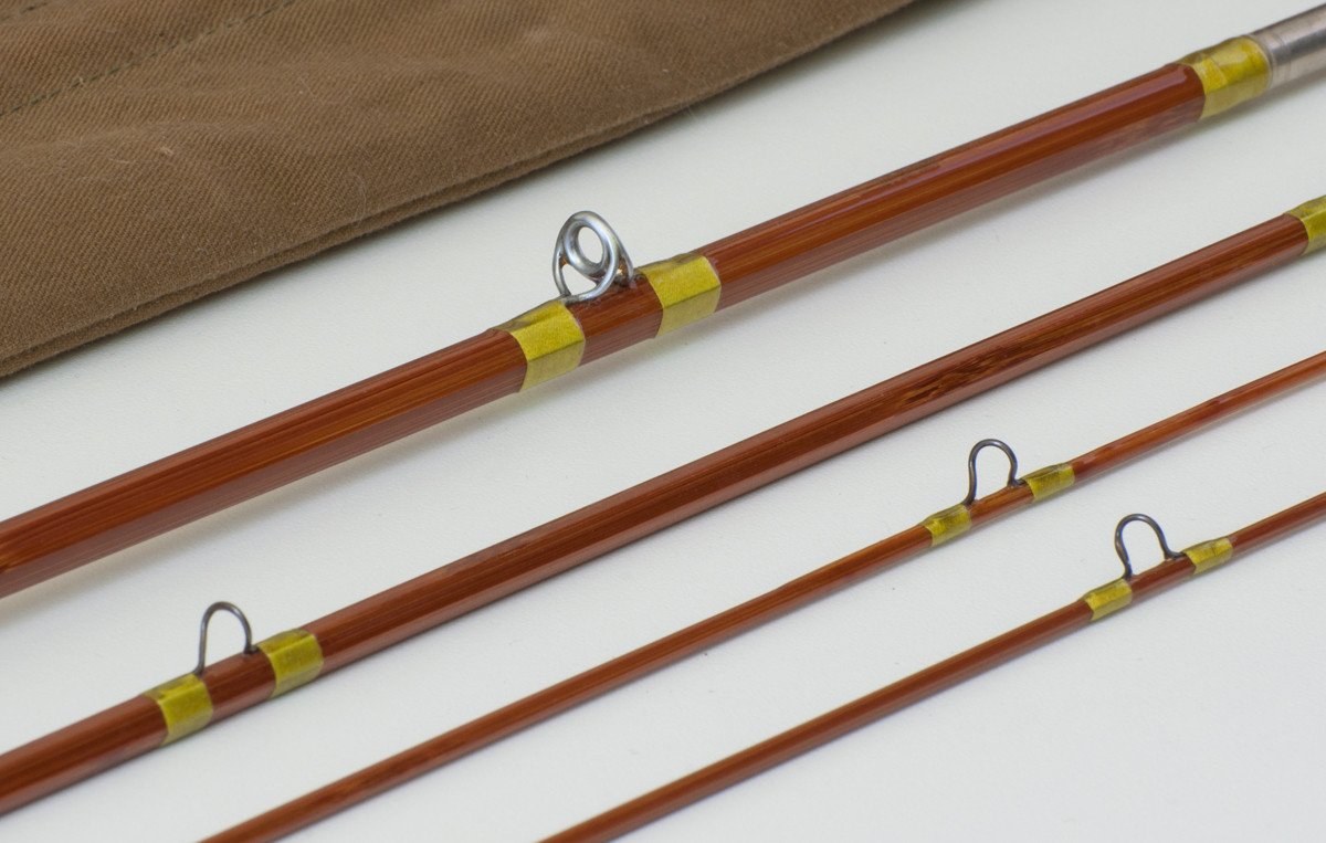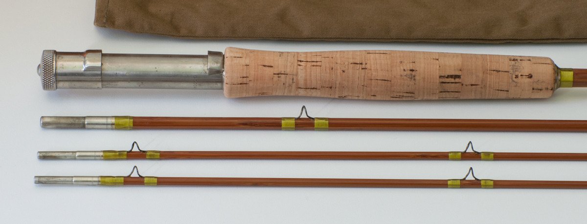 For sale here is a Goodwin Granger Model 8040 Special - 8' 3/2 for a 4 or 5wt line. Excellent restored condition (Michael Sinclair performed the restoration). One tip was scarfed but remains full-length. One tip top is a replacement. Rod weighs 4 5/8 oz. Size 15/64 and 10/64 ferrules and the fit is excellent. Patented uplocking reel seat. Comes with original bag and labeled tube.