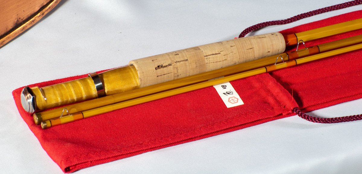 For sale here is a bamboo rod handcrafted in Japan by Katsumi Harada - 7'9, 3/1 for a 5 weight line. This rod features a graphite spigot ferrule system which allows the rod taper to flex consistently through the ferrule sections. Orange silk wraps are tipped black. The rod weighs a mere 3.4 oz. Full-flexing, medium fast parabolic action. The rod is nodeless. Urethane varnish is very nicely done. Comes with custom rod bag. The rod has been fished, so the price is discounted from Harada-san's standard list price.
