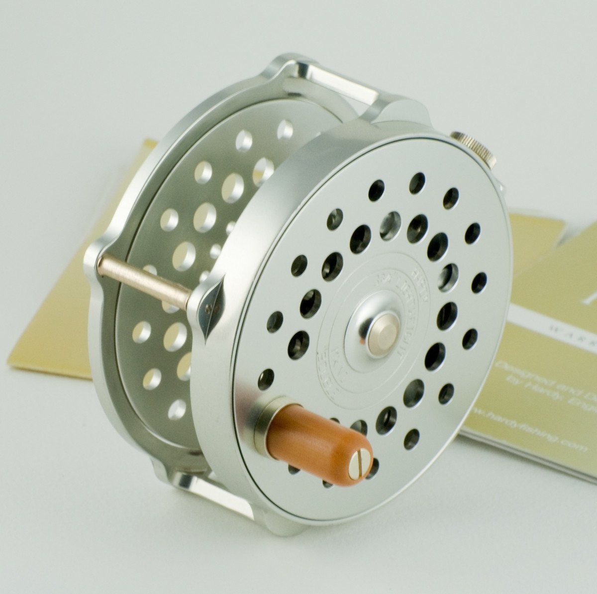 For sale here is a Hardy Bougle 3 3/4" MKVI fly reel. Near mint condition with original paperwork. No box or reel pouch. Can be easily switched from RHW (currently) to LHW, just let me know which you prefer. As far as the question "Was the reel made in England versus Korea", I say without certainty that it was made in England before the change. The serial number begins with an "A". There are 12 ball bearings. The foot screws are offset. The handle is the older, darker variety. All of these point to an English made reel.