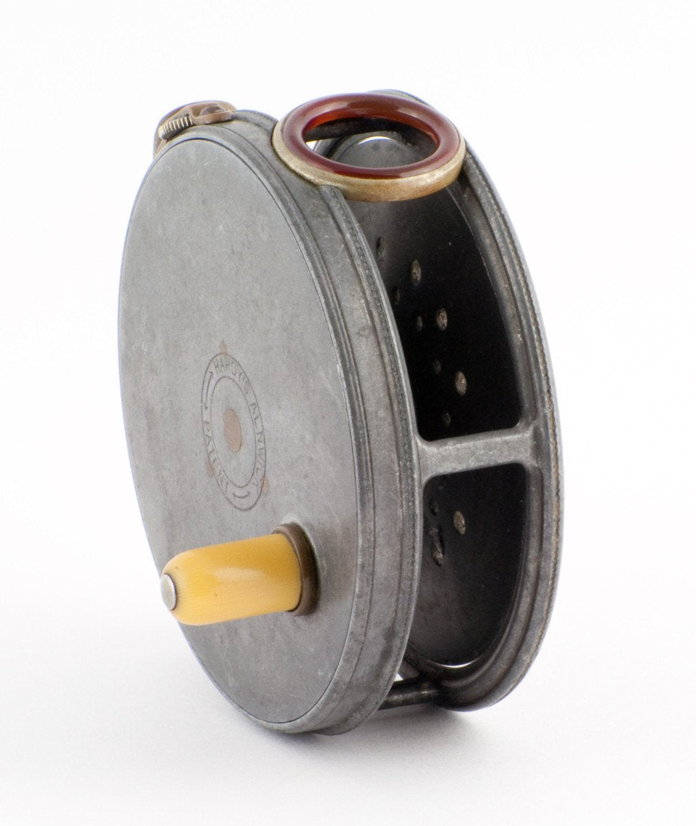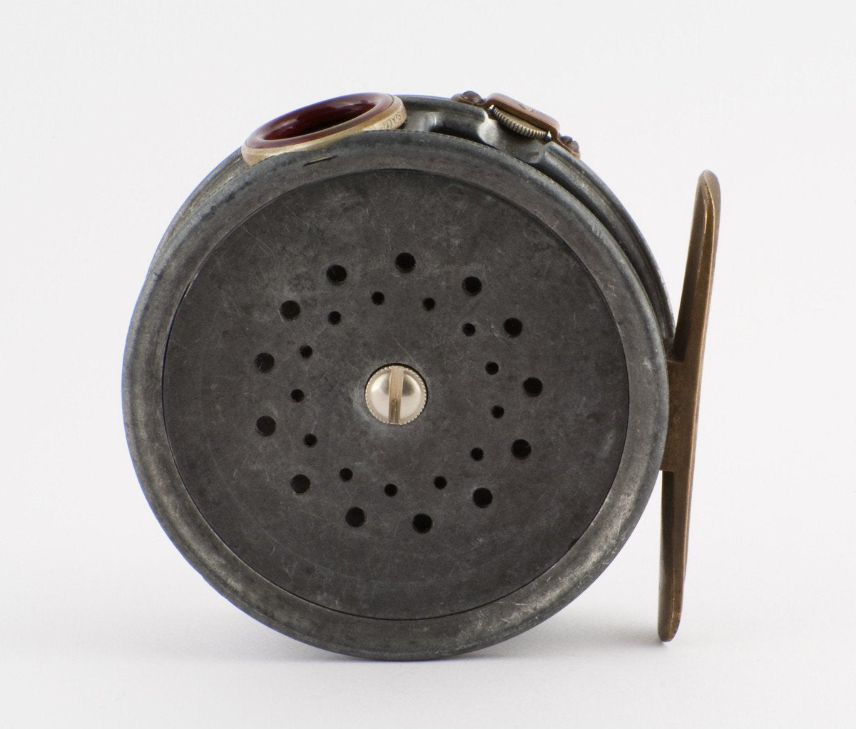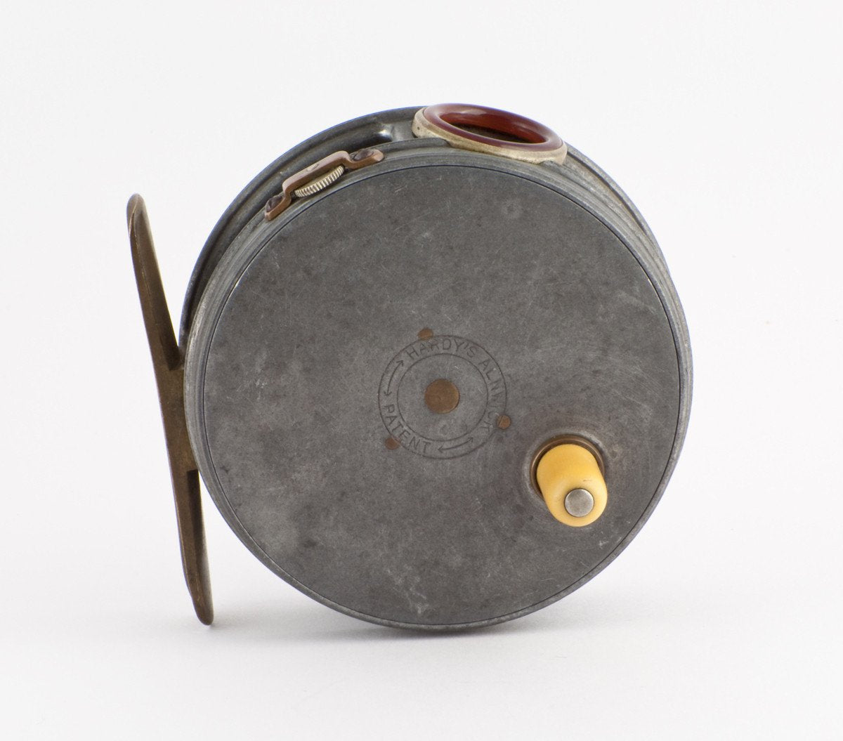 For sale here is a Hardy Perfect with a highly coveted 1912 check and red agate line guide. 3 3/8" diameter. RHW. Ivory handle spins freely. Strap over tensioner and associated drag strength works perfectly. The red agate line guide is crack-free. The spool screw is a replacement. Tight reel. Another collector-grade Hardy Perfect for sale here. Don't let it get away!
