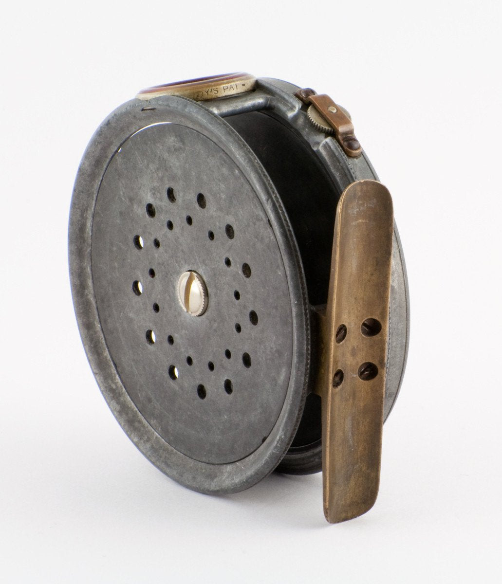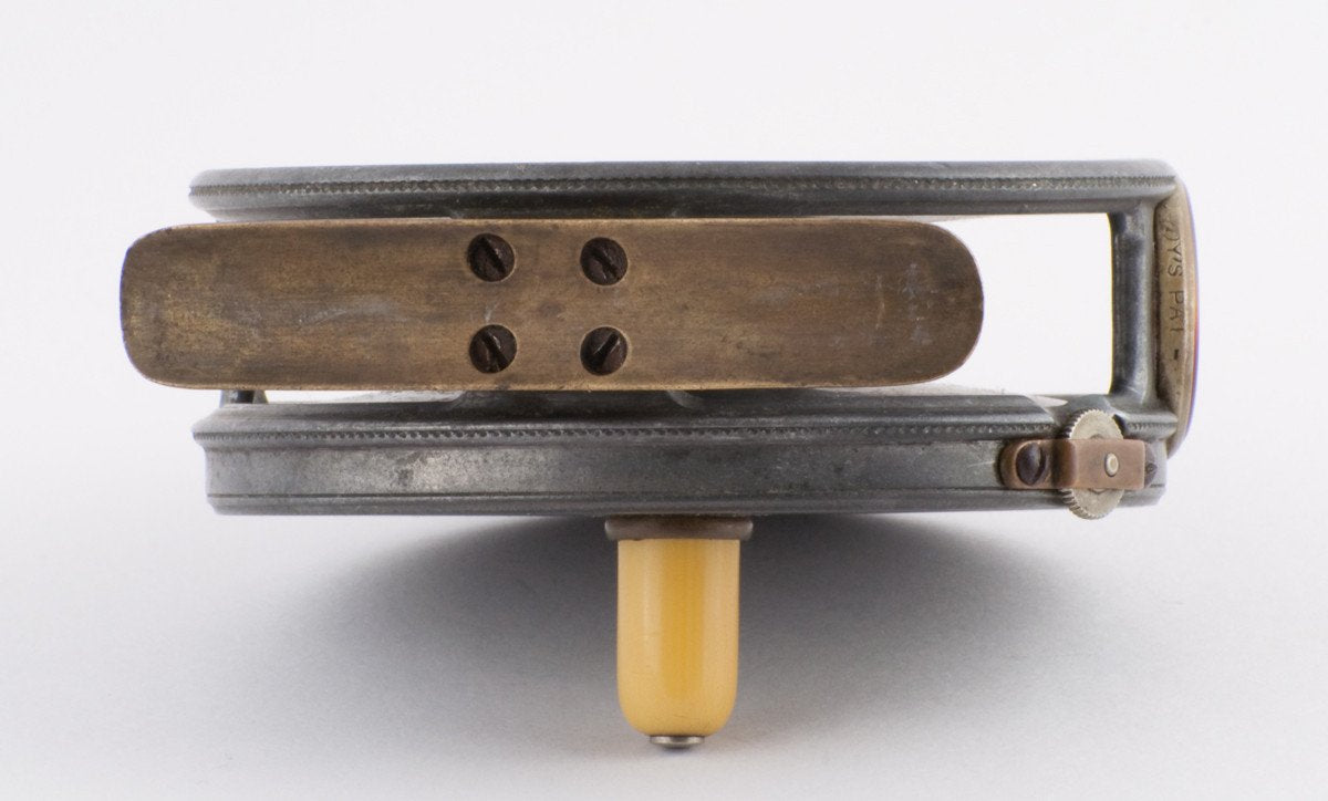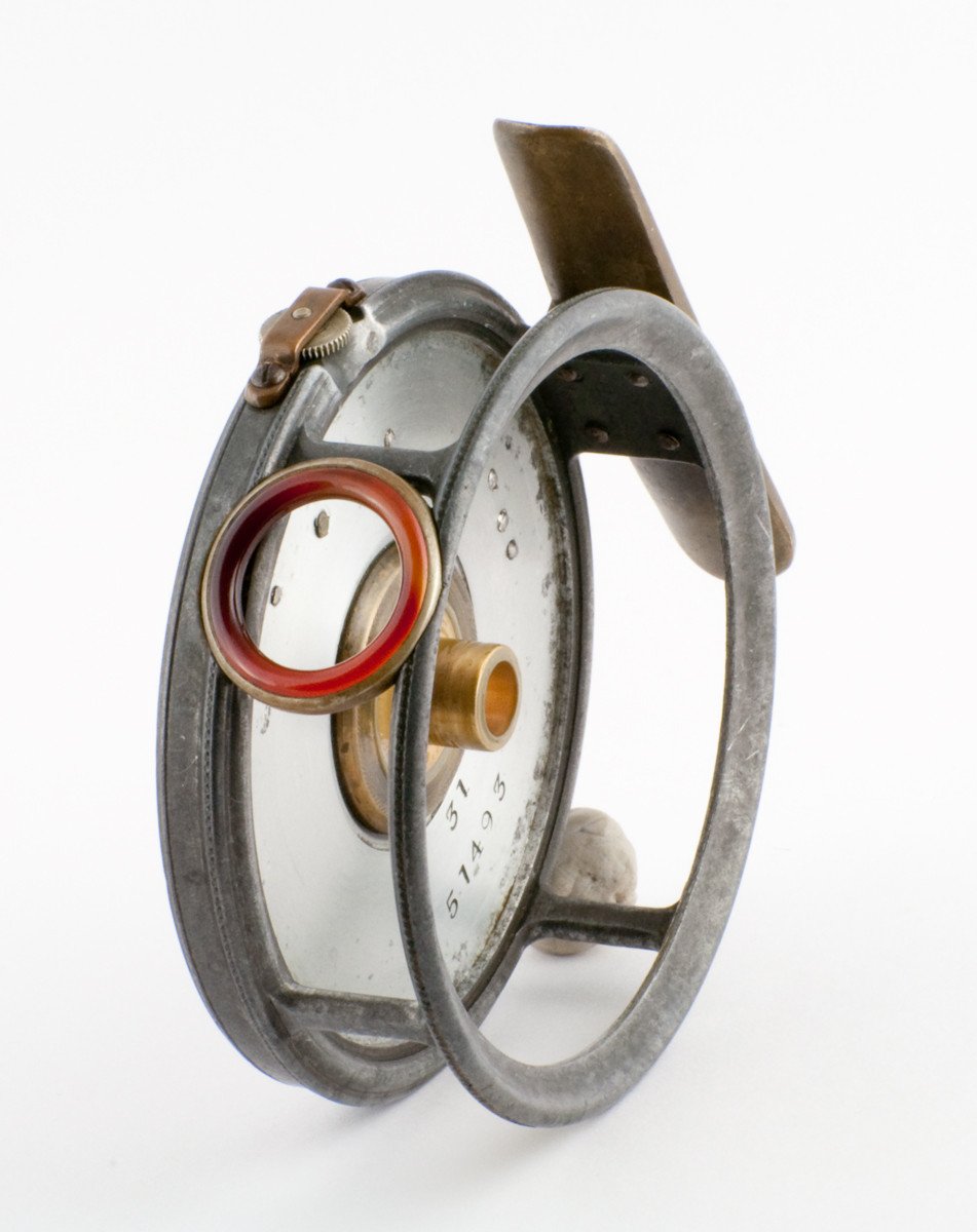 For sale here is a Hardy Perfect with a highly coveted 1912 check and red agate line guide. 3 3/8" diameter. RHW. Ivory handle spins freely. Strap over tensioner and associated drag strength works perfectly. The red agate line guide is crack-free. The spool screw is a replacement. Tight reel. Another collector-grade Hardy Perfect for sale here. Don't let it get away!