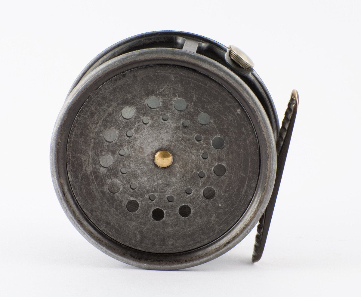 For sale here is a very nice example of a wide drum Hardy Perfect 3" trout reel. Dup MKII check. Excellent+ overall condition. The ribbed brass foot is unmolested. The spool/spindle fit is excellent. The tensioner works perfectly. There is no evidence of repair or any un-original parts.
