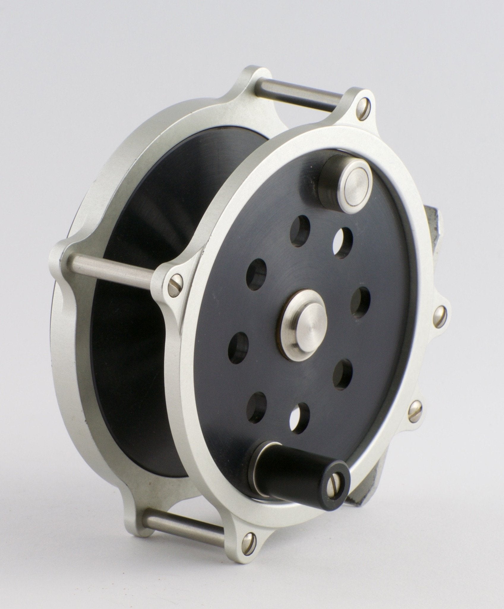 For sale here is a reel not seen very often. From what I can gather from my research, it was made by Dave Atwood (Volstro) for HL Leonard back in the 1980's. He is said to have built about 200 of these reels but Leonard never took delivery of the reels because they filed for bankruptcy. The diameter is 3 3/4" pillar to pillar. The reel is suited for a 6DT or 7WF line and will take a lot of backing. The reel is in excellent+ condition showing very little use. Left-hand retrieve.