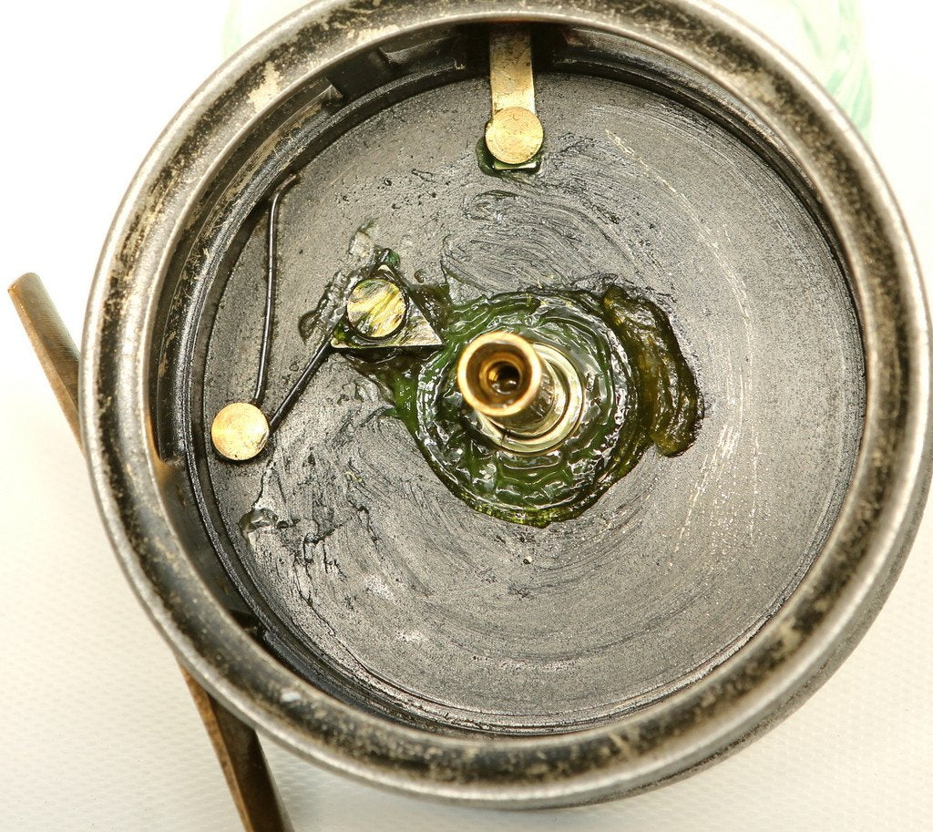 For sale here is a 3 1/2” Young’s made reel badged as "The Gilmour" for Allcocks. A 1920's reel with most of the leading worn off. Foot is original and unmolested, erinoid handle, no undue spindle splay. Dark red agate in good order.