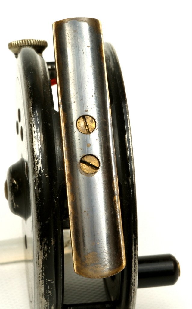 A nice example of the 2 screw latch, fine black enamel finished trout reel. Small amount of paint wear commensurate with minimal use.