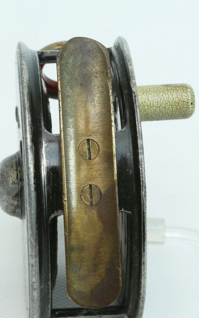 For sale here is a 3” JW Young’s Pattern 1 made for Allcocks. A 1920s reel with most of the leading worn off; foot is original and unmolested; erinoid handle, no undue spindle play. Dark red agate in good order. A great little trout reel.