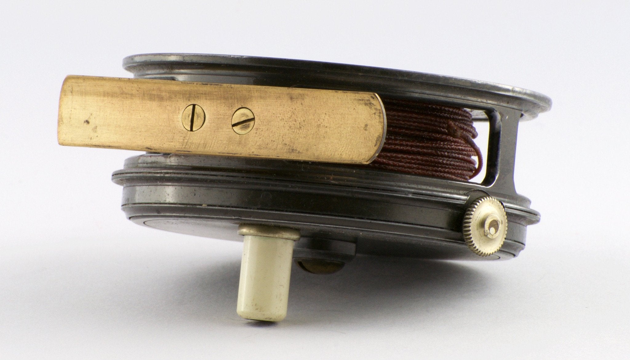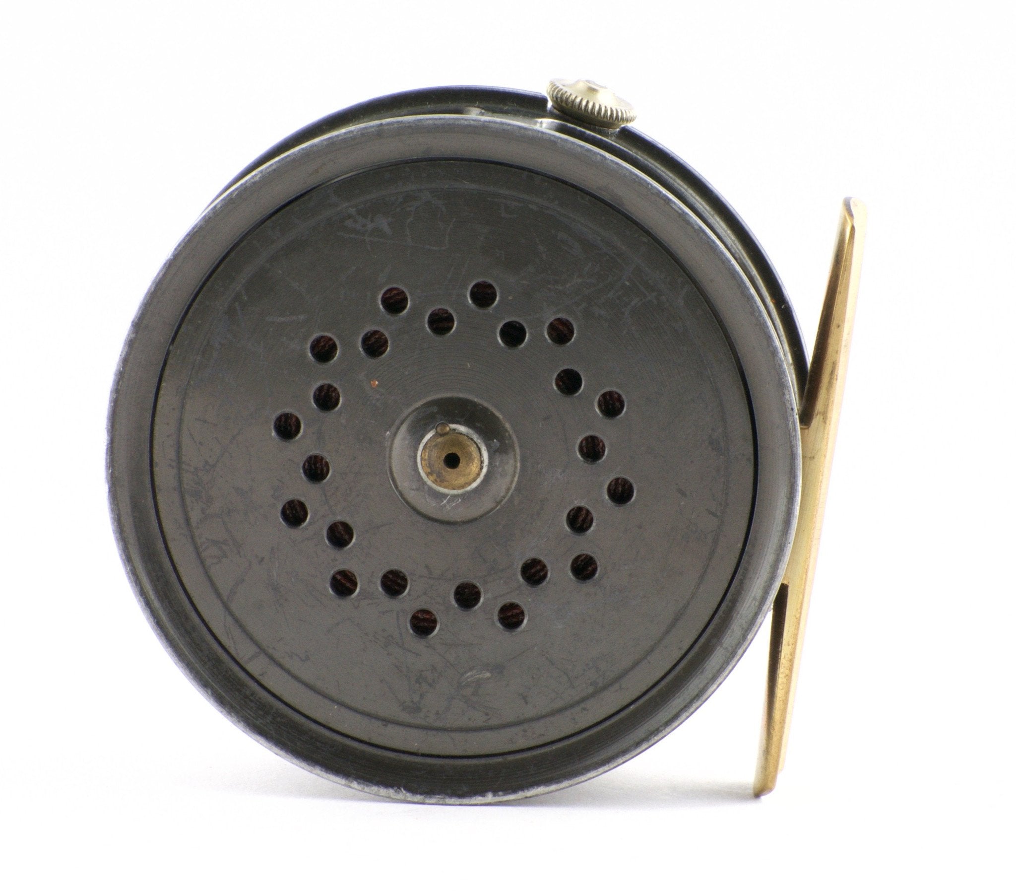 For sale here is a nice Young Pattern 16A fly reel. Made for Farlow's. Diameter is 3 1/8". The brass reel foot is original and unmolested. Most of the original finish remains. Coin-edge tensioner works perfectly. Dual pawls. Negligible spool wobble/end play.