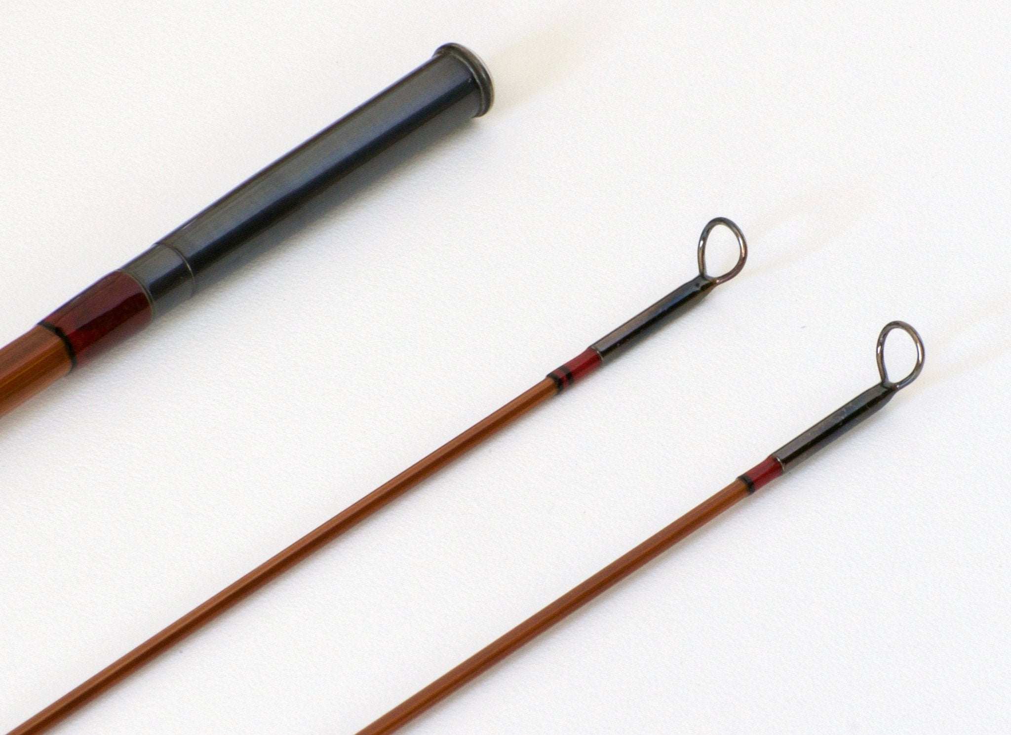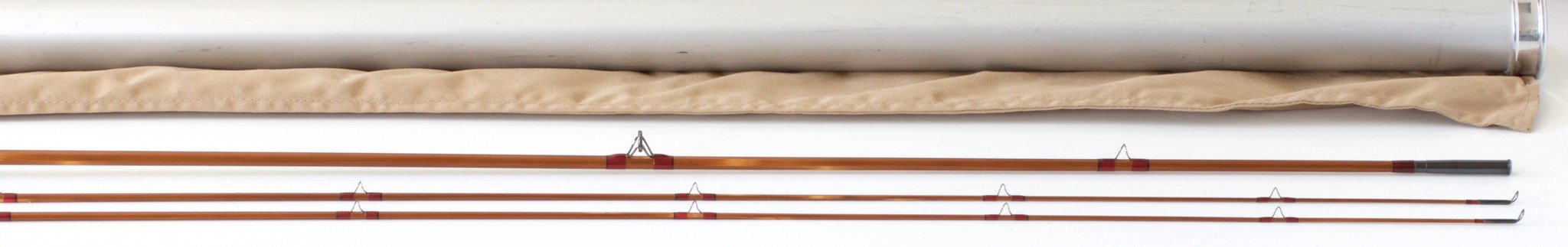 For sale here is 7 1/2 foot, 4 weight bamboo rod made by Olaf Kundrus. Mint unfished condition. The rod weighs 4 oz. Size 13/64 Super-Z type ferrules. Perfect varnish finish. Cap and ring over an absolutely stunning wood spacer. Comes with original bag and tube. If you aren't familiar with Mr. Kundrus, here is his website. Extremely nice rod with a pleasant medium fast action.