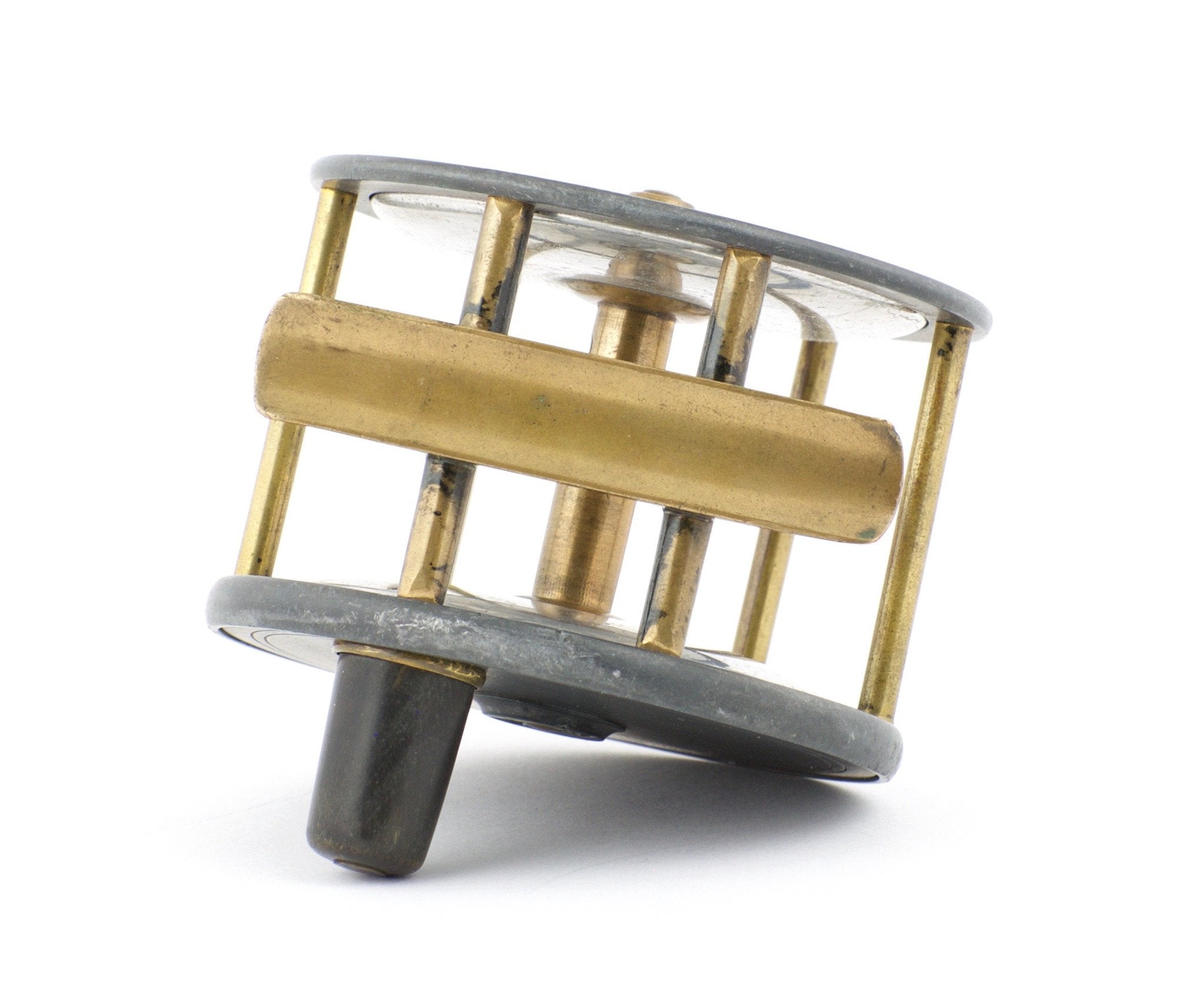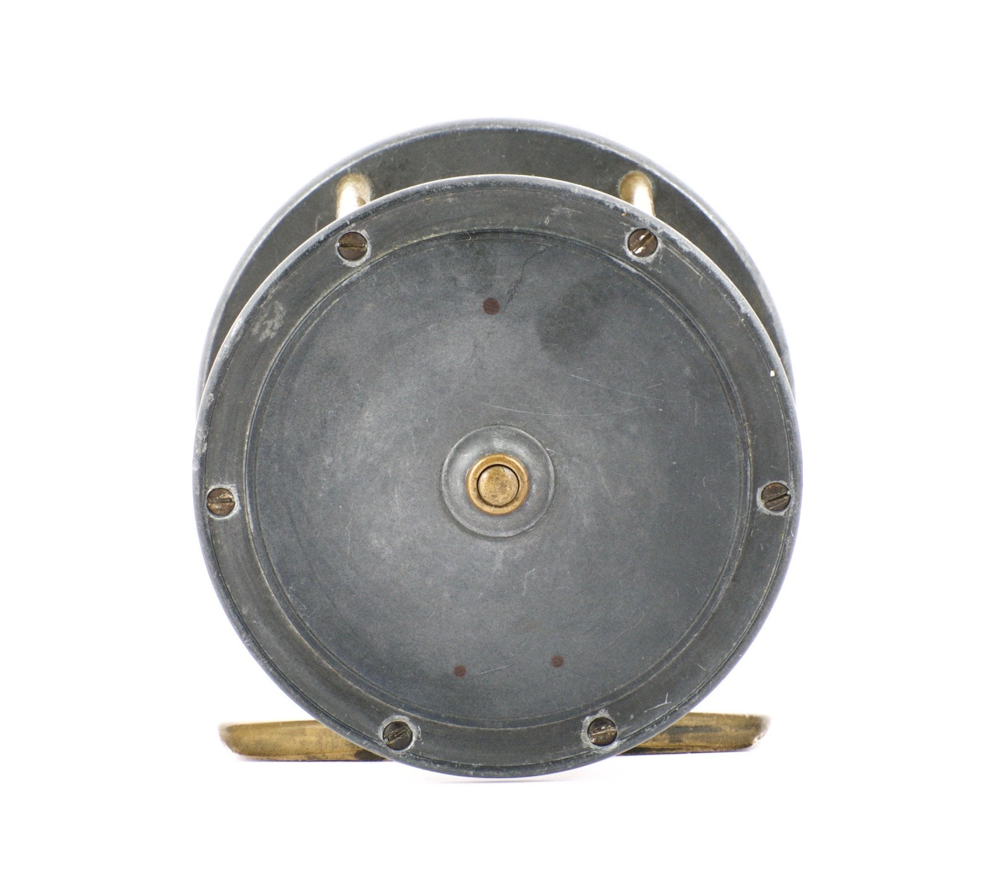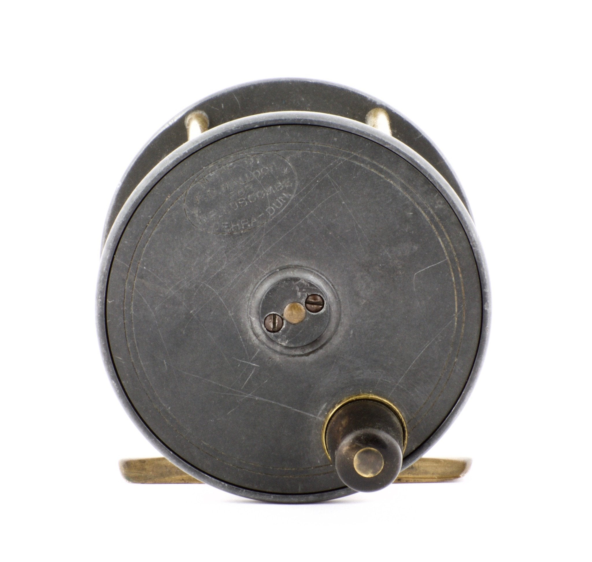 For sale here is an extremely scarce PD Malloch 3 1/2” diameter alloy extra wide Mahseer fly reel. The face plate is stamped “Made by PD Malloch for TP Luscombe Dehradun” (India) in oval logo. Horn handle, brass pillars and original unmolested reel foot. 2 1/2” overall width. The reel retains virtually all of its original finish. The click/pawl operation is smooth without rubbing. The spring tension is strong enough to prevent spool backlash. This reel comes from the Mark Ross collection and we don't know of another example. Definitely one for the discriminating collector!