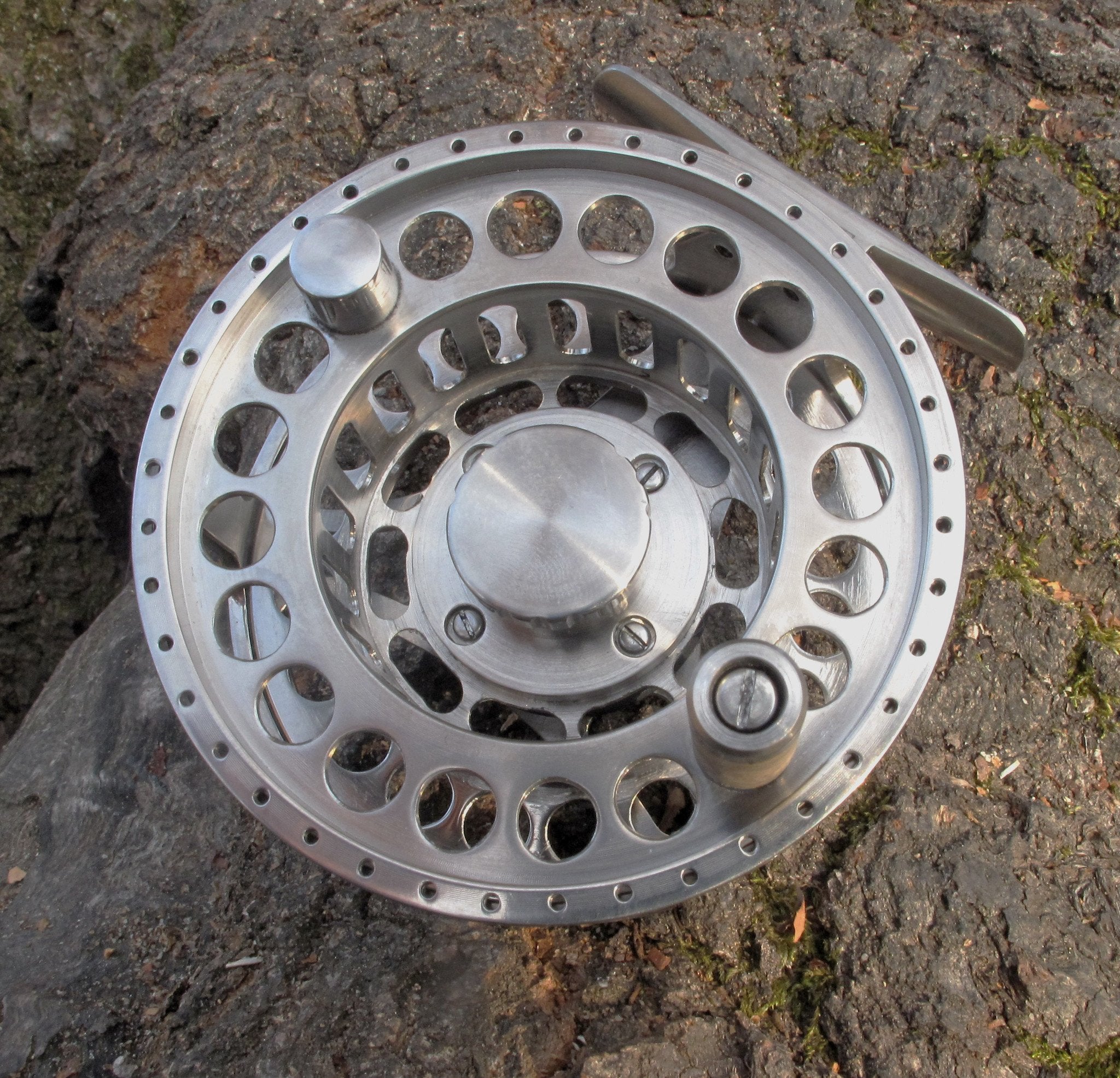 For sale here is a Megoff Model MDS 57 DD LA Ti fly reel made by Alex Kaplun. The reel is machined from solid, high-grade titanium and built to last longer than any of us will! The MDS reel models have a skeletal frame design, carbon fiber disc drag, and outgoing click.