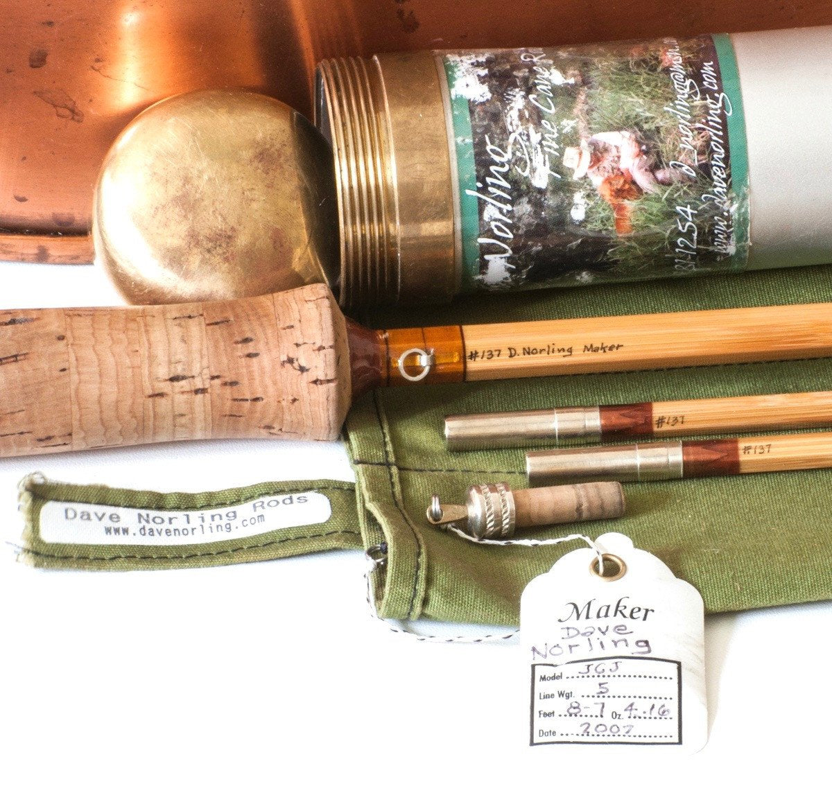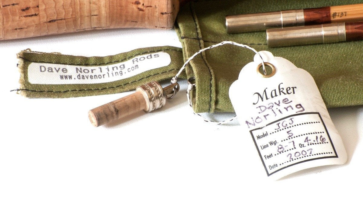 For sale here is a Dave Norling hollowbuilt bamboo rod. 8'7" two-piece / two-tip rod for a 5 line. The rod is in excellent plus condition with light soiling of the grip, which can be cleaned at the request of the buyer. All sections are full length and straight. Nickel silver cap and ring with fine knurling. Bright hardware fittings. Clear caramel wraps with maroon edges. Stunning agate stripping guide. The rod weighs 4 1/8 oz. Includes original bag and labeled aluminum tube, as well as the original knurled ferrule plug.The rod has a very pleasant medium to medium fast dry fly action. A wonderful all-around trout rod.