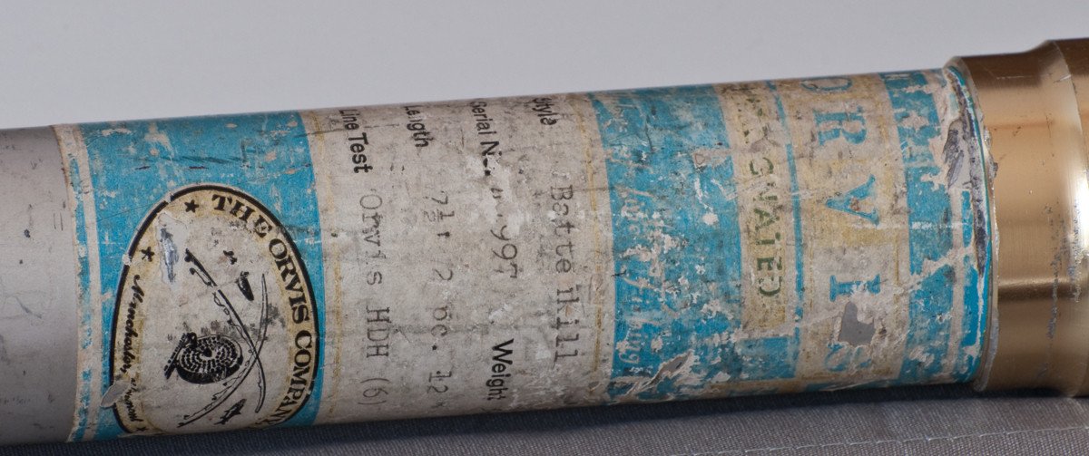For sale here is a 7'6" 2/1 Orvis Battenkill impregnated bamboo rod. Labeled for a #6 line but casts best with a #5 in my opinion. Serial #44997. The rod is in excellent condition overall. Original bag and labeled tube. Ferrules are size 12/64 and the fit is excellent. Aluminum down-locking reel seat. The rod weighs 3 7/8 oz.