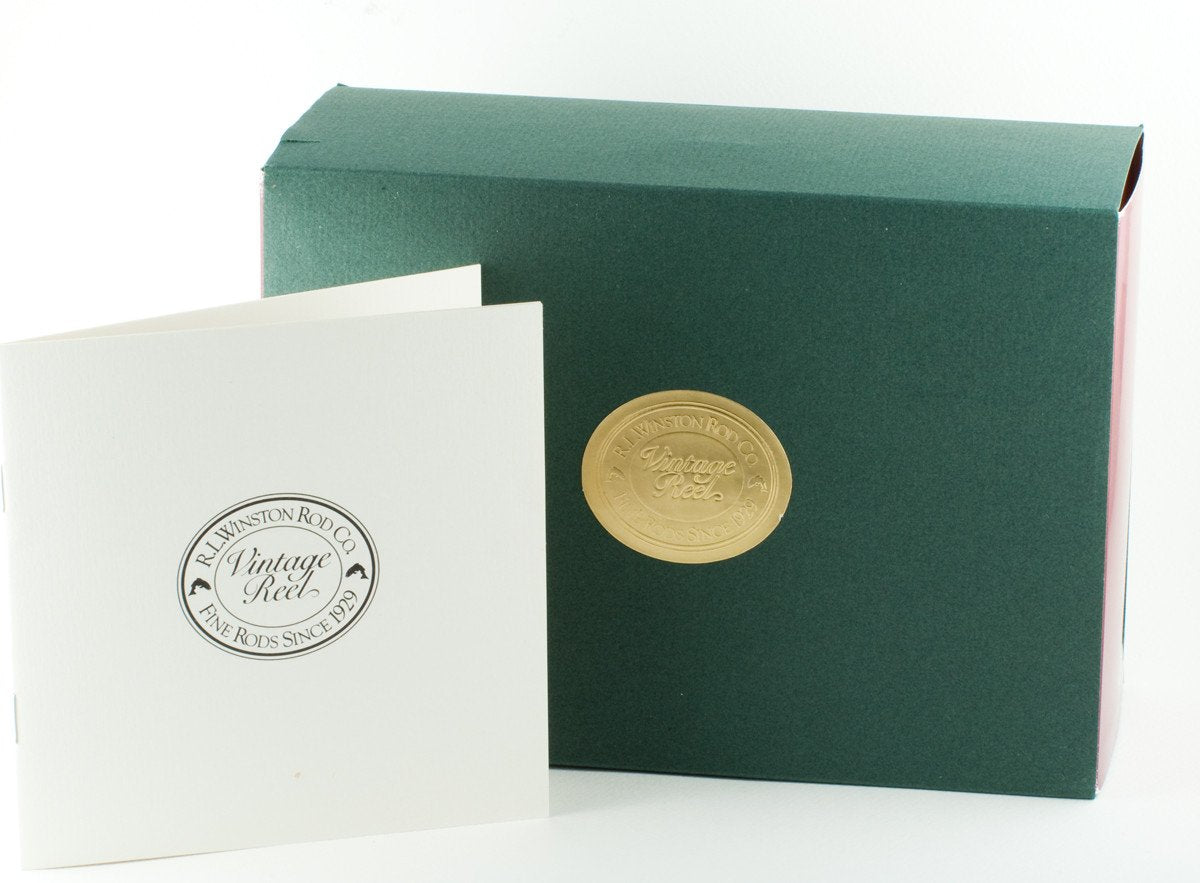 For sale here is a R.L. Winston Co. "Vintage" Limited Edition Trout Fly Reel made in the early 1990s. Reel is in mint condition and is set up for left-hand retrieve. This reel is for a 5/6 line with a 3 1/4" diameter and 13/16" wide spool. Comes in mint condition pine presentation box with mint condition spare spool and reel oiler. Serial #0291. Also comes with ALL of the original packaging....the first time I've seen the original cardboard box and the white certificate of authenticity. Don't miss out!