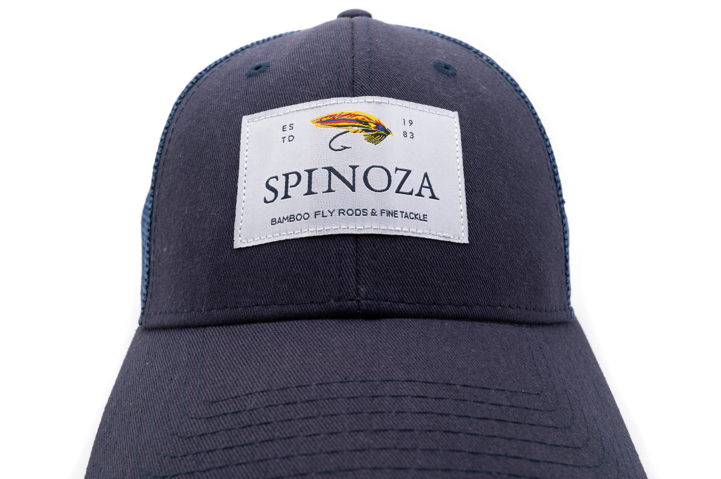 A medium profile trucker hat sporting our Spinoza Logo with the Jock Scott salmon fly. Six panel design, with a mesh back to keep you cool and an adjustable snap back closure. On the underside you'll find a little mantra to keep you in form when on the water.