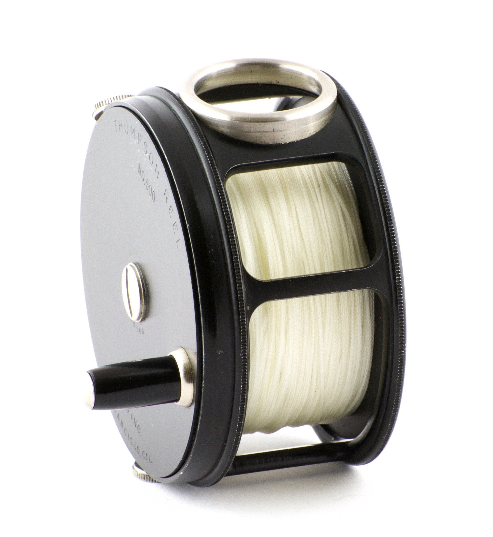 For sale here is a Thompson No. 500 fly reel - made in California in the late 1940's. Diameter of is 3 3/8". Similar in style and performance to the classic Hardy Perfect. The reel is in excellent condition with the majority of its wonderful black finish remaining. Circular line guard and full-length smooth brass reel foot. The No. 500 was built to handle 6/7/8 weight lines. This drag system was unmatched in the American market back in the 50's. This is ultimate steelhead and light salmon reel for single handed rods.