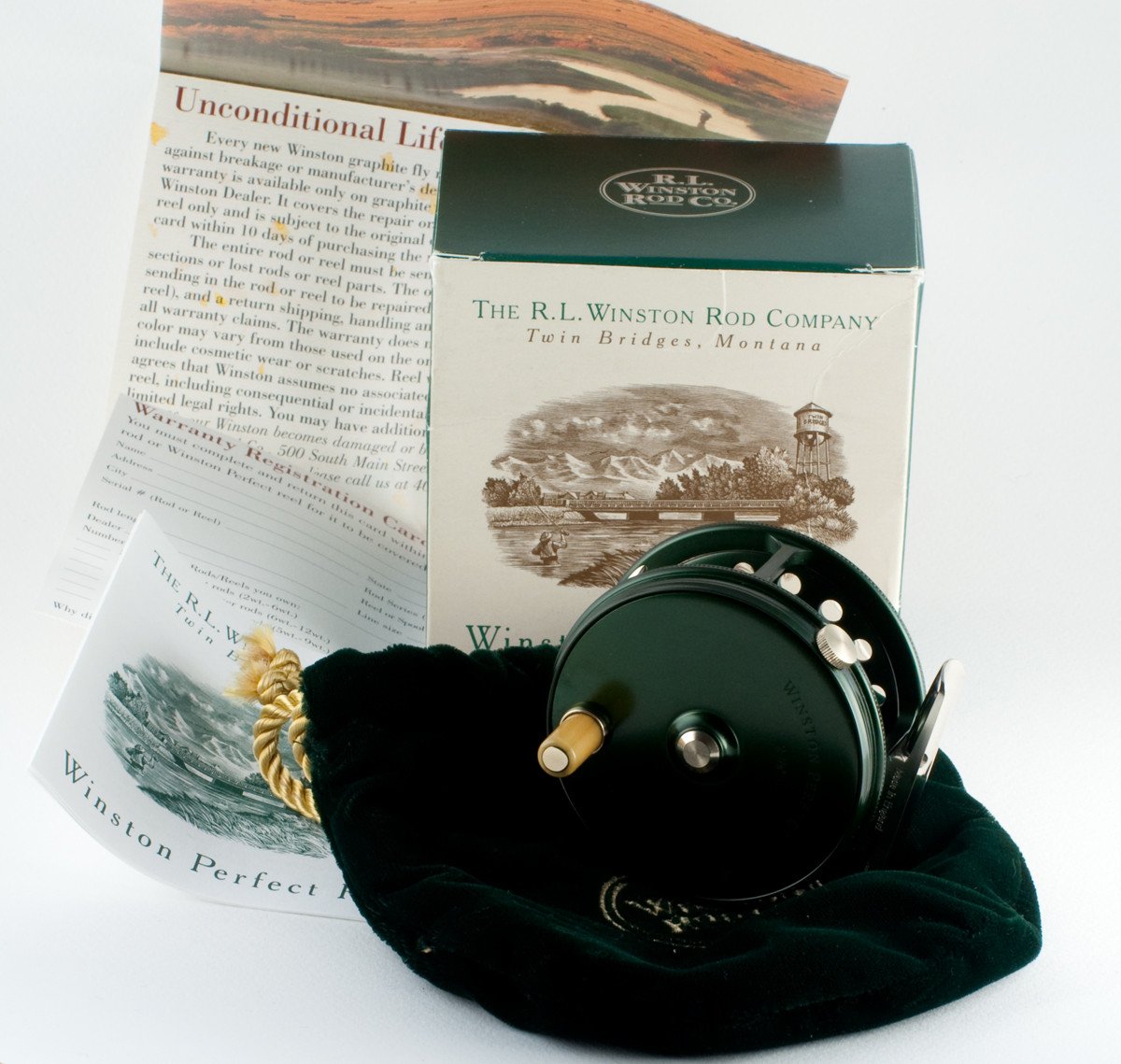 For sale here is a 2 7/8" Winston Perfect in unused condition with original box, pouch and papers. This reel is set up for LHW but can be easily switched to RHW. Made by Hardy Bros. England. You will note in the photo of the winding plate a bronzing effect by the handle and center tab....this is a camera illusion only. You will not be disappointed!