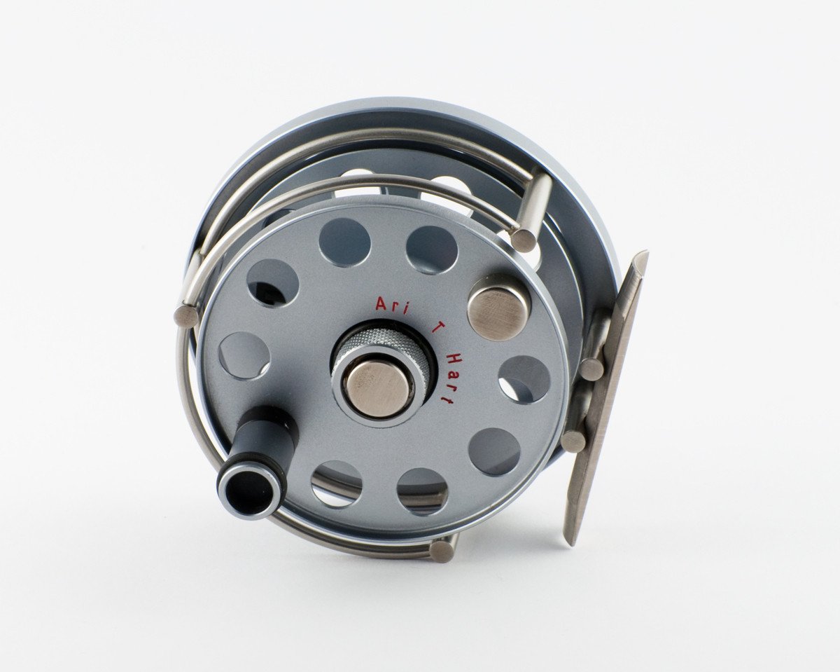 For sale here is an Ari 't Hart Round II trout fly reel in near mint condition. Reel foot has marks from being mounted, no other flaws. Titanium version. Made in Holland. The reel is set up for left hand retrieve. Comes with original pouch, box and certificate of authenticity. Spool diameter 2.83". Weight 6 oz. Capacity up to a WF7+109yds. Perfect for big fish and 5-7wt lines! Make an offer!