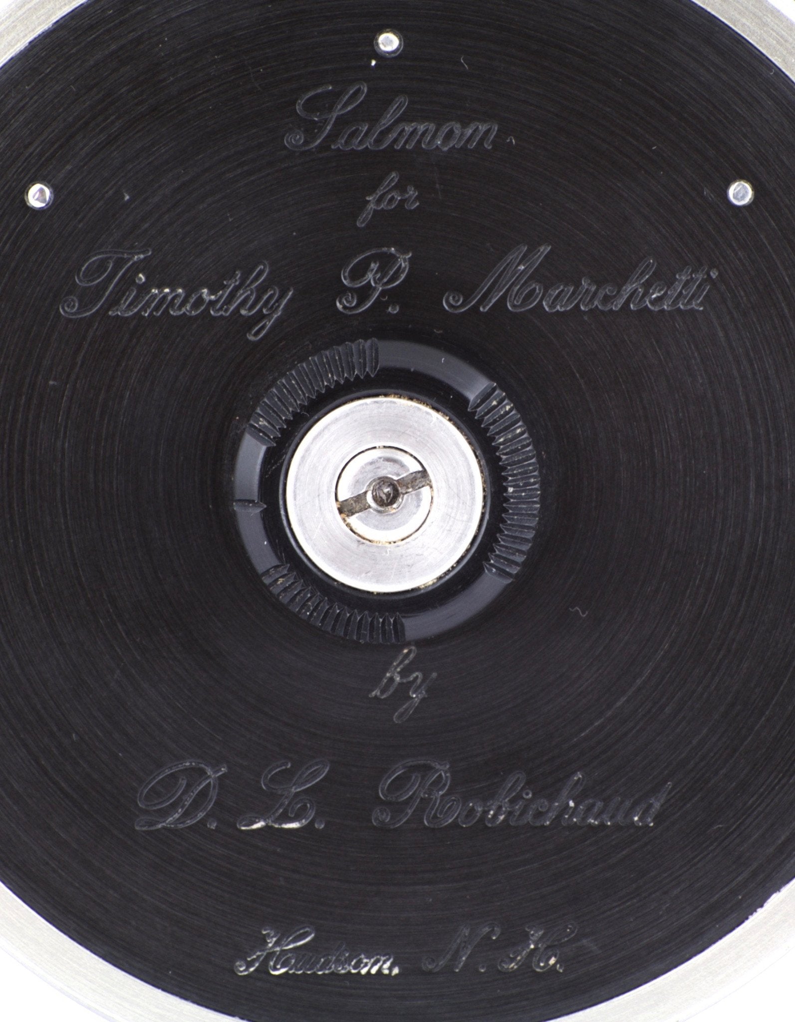This reel was made for rodmaker Tim Marchetti, as elegantly inscribed on the backplate.
