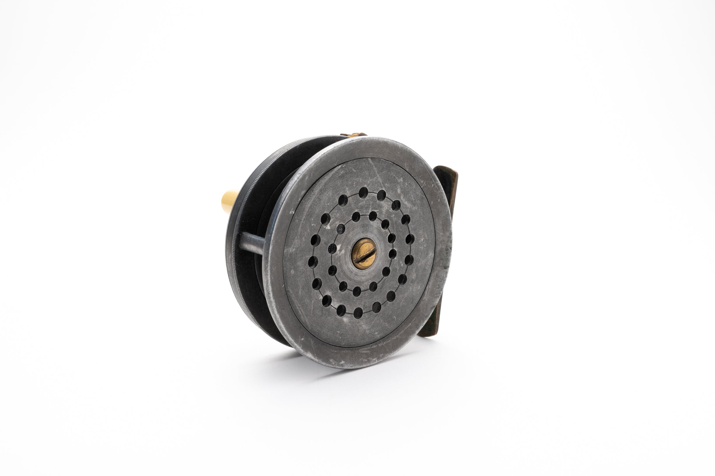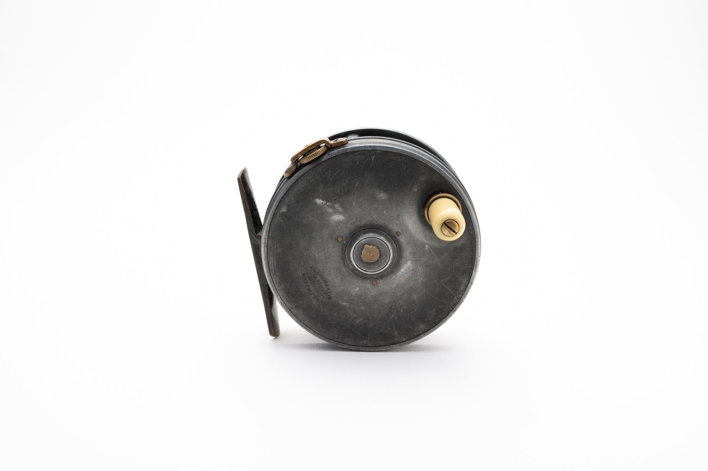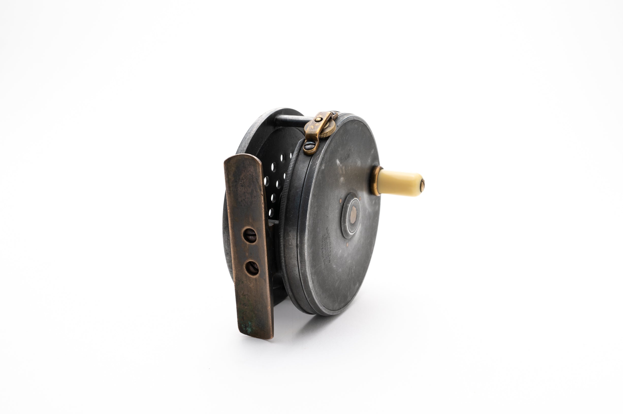 A nice Dingley 3" fly reel made for retailer Alex Martin. Set up for RHW. Excellent patina and the frame and sideplate are on great condition. "Thistle" stamped on the winding plate along with "Alex Martin / Glasgow, Edinburgh, Aberdeen". No major scratches or issues anywhere. Nice coin-edge knurl in the inside edge of the crank side of the frame. Brass un-filed foot. Nice dual check design and the spring and pawl look good. The tension adjuster works well throughout the drag range. "D1" stamped inside. Nice and tight spool. A good little example of Dingley desiign here, ready for many more seasons on the river.