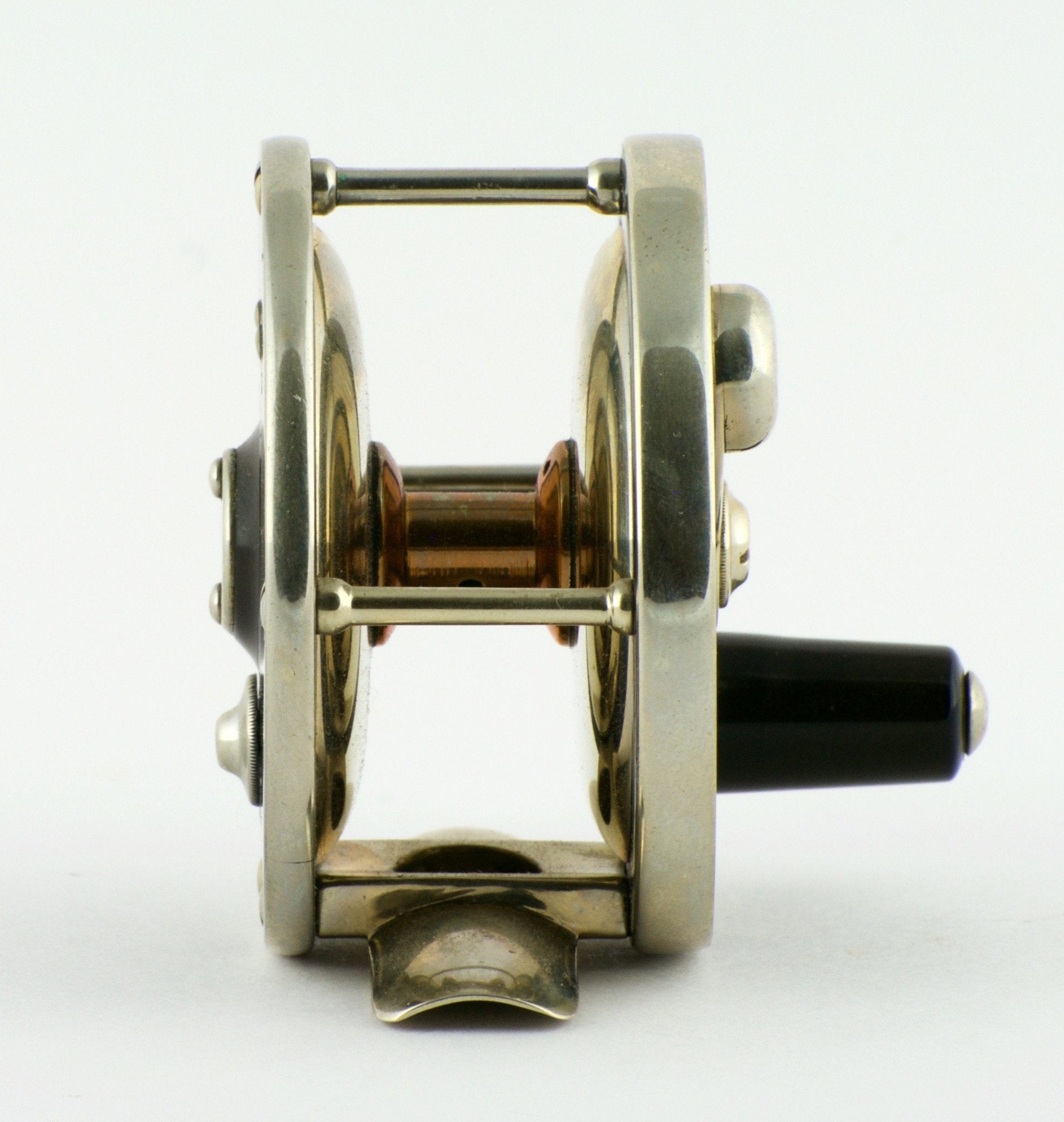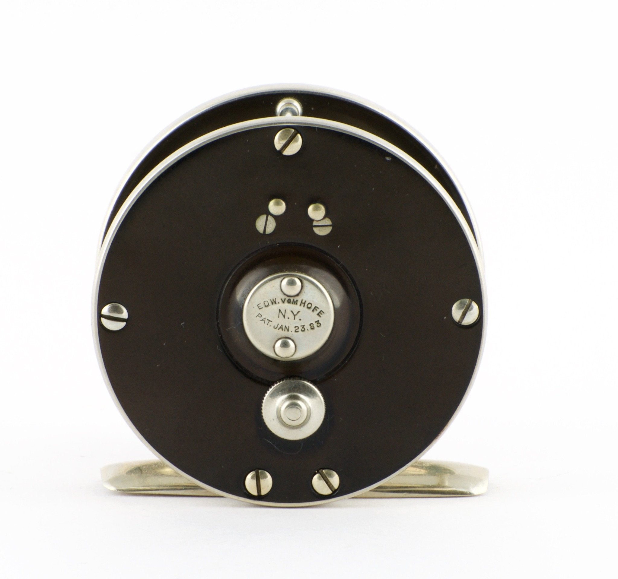 For sale here is a scarce Edward Vom Hofe Model 355 Peerless fly reel - Size 3 1/2. Excellent plus condition. Pre-1900 reel. Fine mechanical condition. Early screw counterbalance feature.