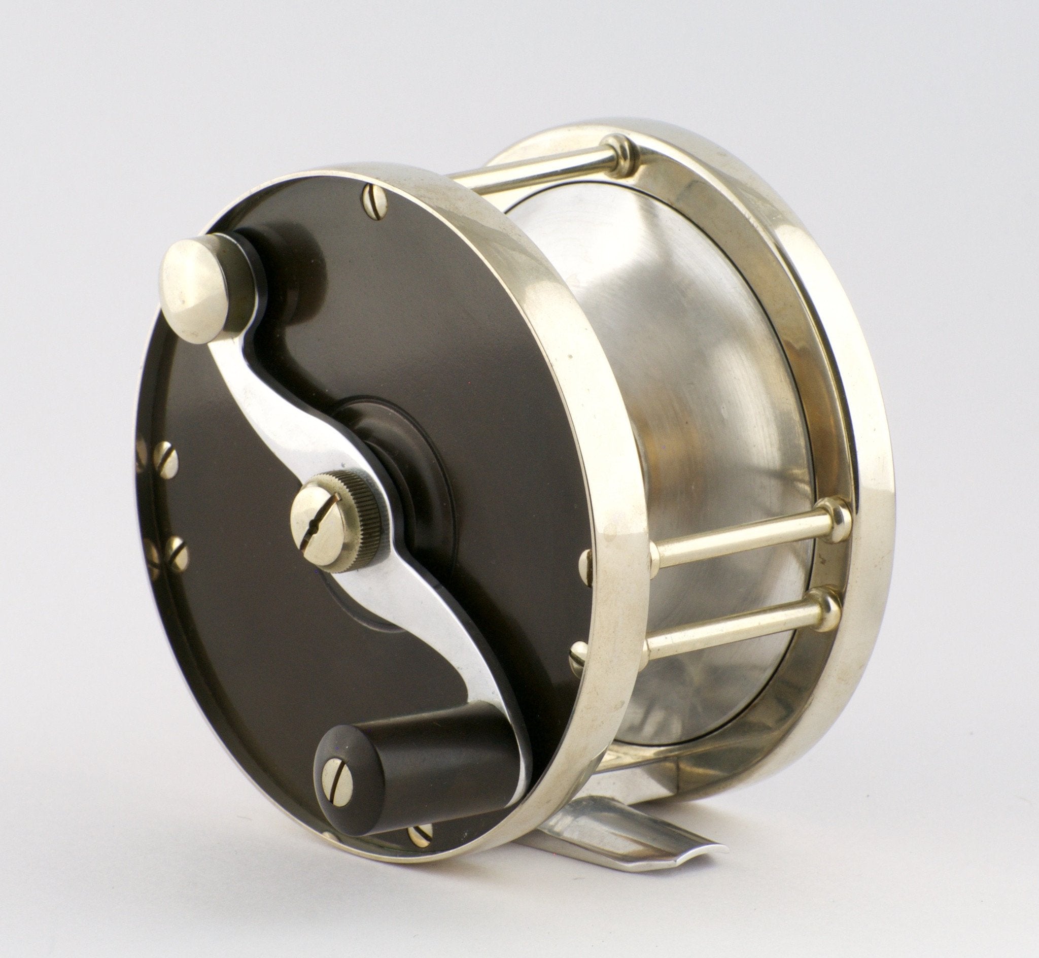 For sale here is a Edward Vom Hofe Model 423 Restigouche - size 3/0. Near mint condition. Inside and out, the reel does not show use. German silver and hard rubber construction. Dual roller bars. Aluminum spool. The aluminum reel foot is full length, unmolested, and has the 423 and 3/0 stamping. Very strong and smooth drag....perfect operating condition. 3 5/8" reel diameter, 1 7/16" spool width, and weighs 13 1/2 oz.