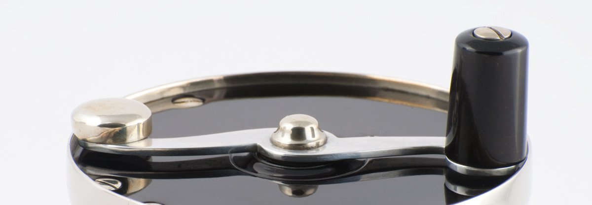 Excellent condition overall. The ebonite is clean and free of cracks. The german silver rims are in fine shape as well. Only one screw on the headplate shows a bit of buggering, the rest remaining nearly perfect. The reel foot is in excellent unmolested condition and includes the model number, size, and serial number. The disc on the backplate that one would typically consider the on/off switch does not appear to move, nor is there evidence of it ever having been moved (no marks on the ebonite around it). Regarding the drag operation, when applied, the tension on the spool remains strong but the drag feels a bit sticky. New brake shoes would remedy this.