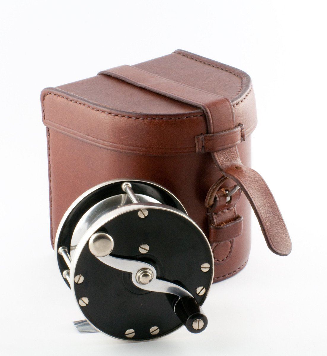 The reel comes with a leather reel case marked 2/0. It has a slot for the reel handle on the bottom of the case and the resulting fit is absolutely perfect.