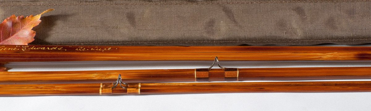 For sale here is a very nice "Gene Edwards Deluxe" 9 foot rod for a 7 weight line. 3/2. Rod may have been restored at some time, can't be certain. The rod sections were recently straightened by Mike Clark, but a slight kink still exists below the female ferrule on the butt section of the rod. Nothing to be alarmed about but I felt I should qualify this fact that the rod is still not entirely straight. Priced accordingly. This is a very beautiful rod and would be a good choice for streamer fishing and bass fishing!