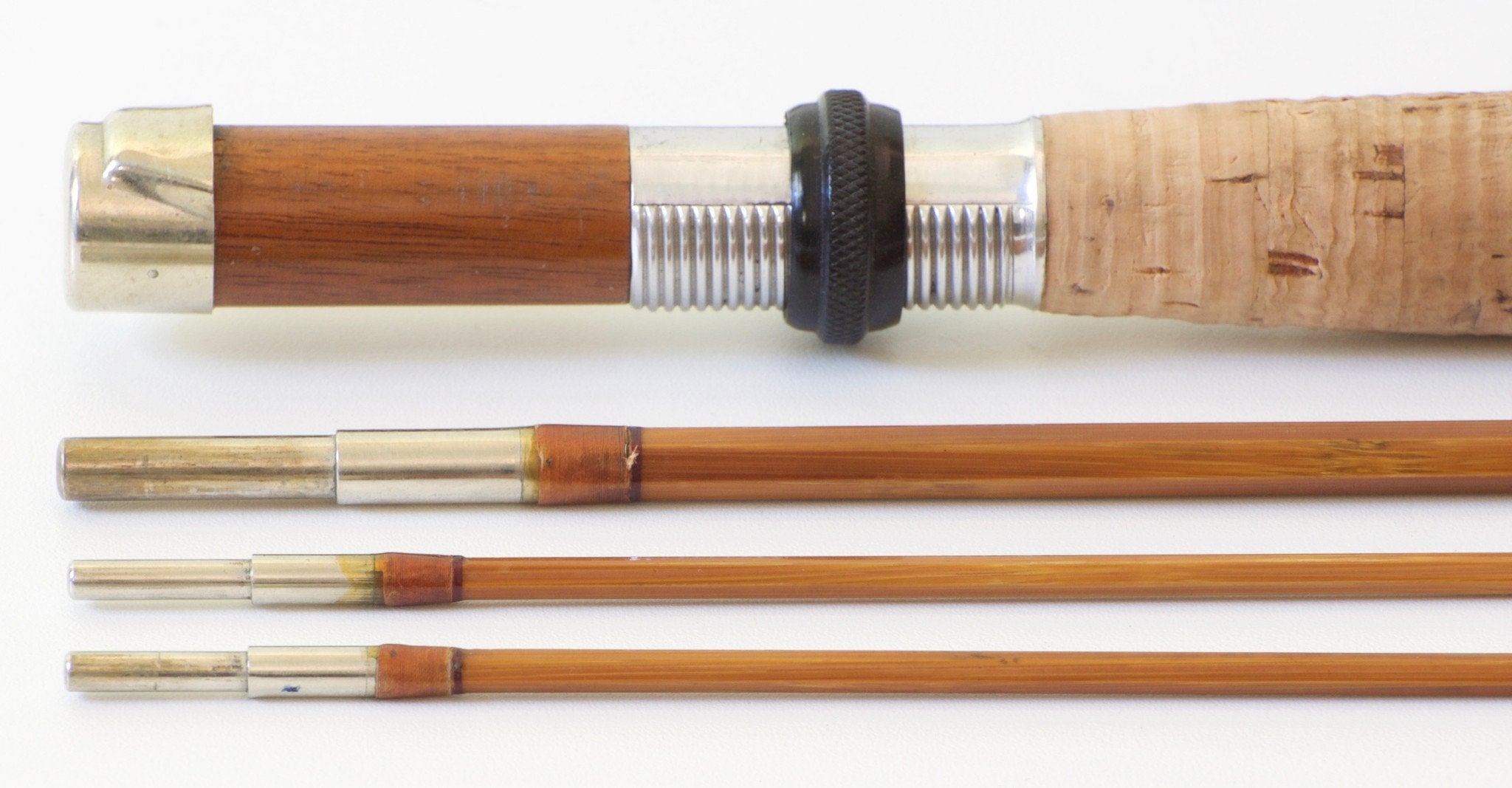 The rod weighs 4 3/4 oz. The action is crisp, on the faster side of medium fast, yet delicate if required. An excellent dry-fly rod.