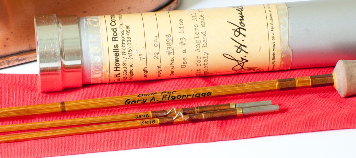 For sale here is a very scarce and early Gary Howells 7 foot bamboo rod for a three weight line in near mint condition. 2 1/4 oz. One of approximately eleven 7' 3wt rods ever made by Gary, per Craig Lynch. Made in Gary's second year of production for the Anglers' All shop in Denver, who then personalized the rod for the buyer (and the current consignor of the rod to us). Medium slow action. All cork reel seat, half wells grip, original bag and labeled tube. The rod does not appear to have been fished much, if at all! The personalization done by for the original owner can be removed by a competent rod maker / restorer since it was inked over the original varnish. Don't let this one get away!