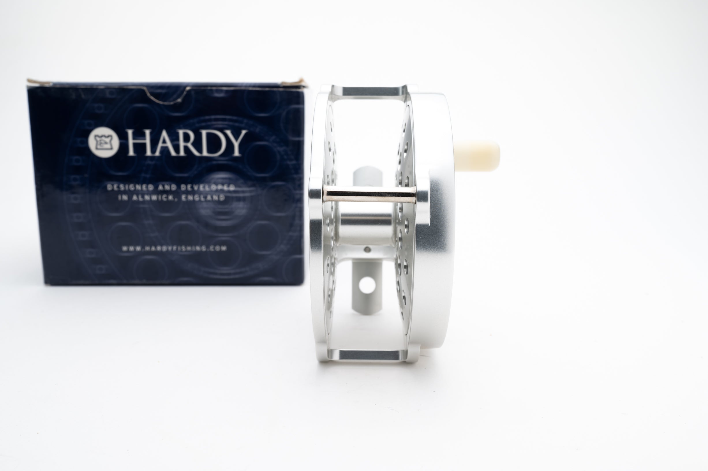 A nice modern Hardy Bougle Lightweight MKVI reel, 3 3/4" and sets up for LHW. Mint unused condition. Korean made. Comes in the original box with paperwork and a neoprene pouch.