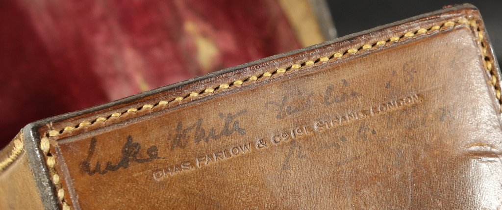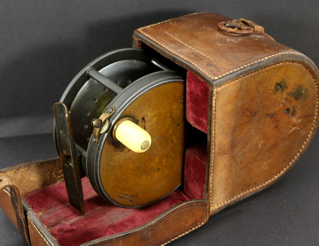 For sale here is a fine Brass Face Hardy Perfect wide drum fly reel - 4 1/4" diameter with Hardy's 1905 check. Excellent plus original condition. Brilliant external finish remaining. Full length reel foot is unmolested. Ivory handle spins freely. All parts stamped "6". Nice tight reel mechanically. No issues to speak of. No line burns on the pillars. This is a very nice example and very clean. It comes housed in a fine Farlow's block leather case. The reel will ship from the UK.