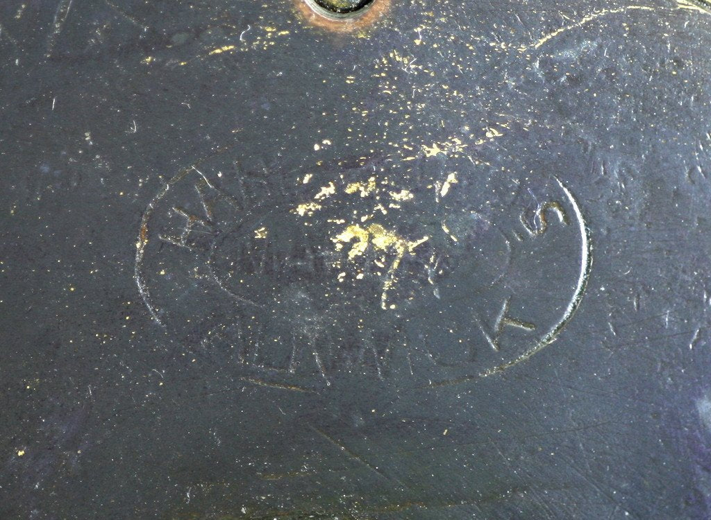 For sale here is a 2 1/2" diameter Hardy dark bronzed crank wind reel. From early 1890s with nicely waisted crank handle and tapered, domed ebonite handle. Constant click check in both directions and no undue play. All pillars and foot appear to be original and in good order. A good example of this early Hardy reel with "Enclosed ovalâ" logo. The dark colour and unmarked foot suggest this reel spent a lifetime in a cupboard.