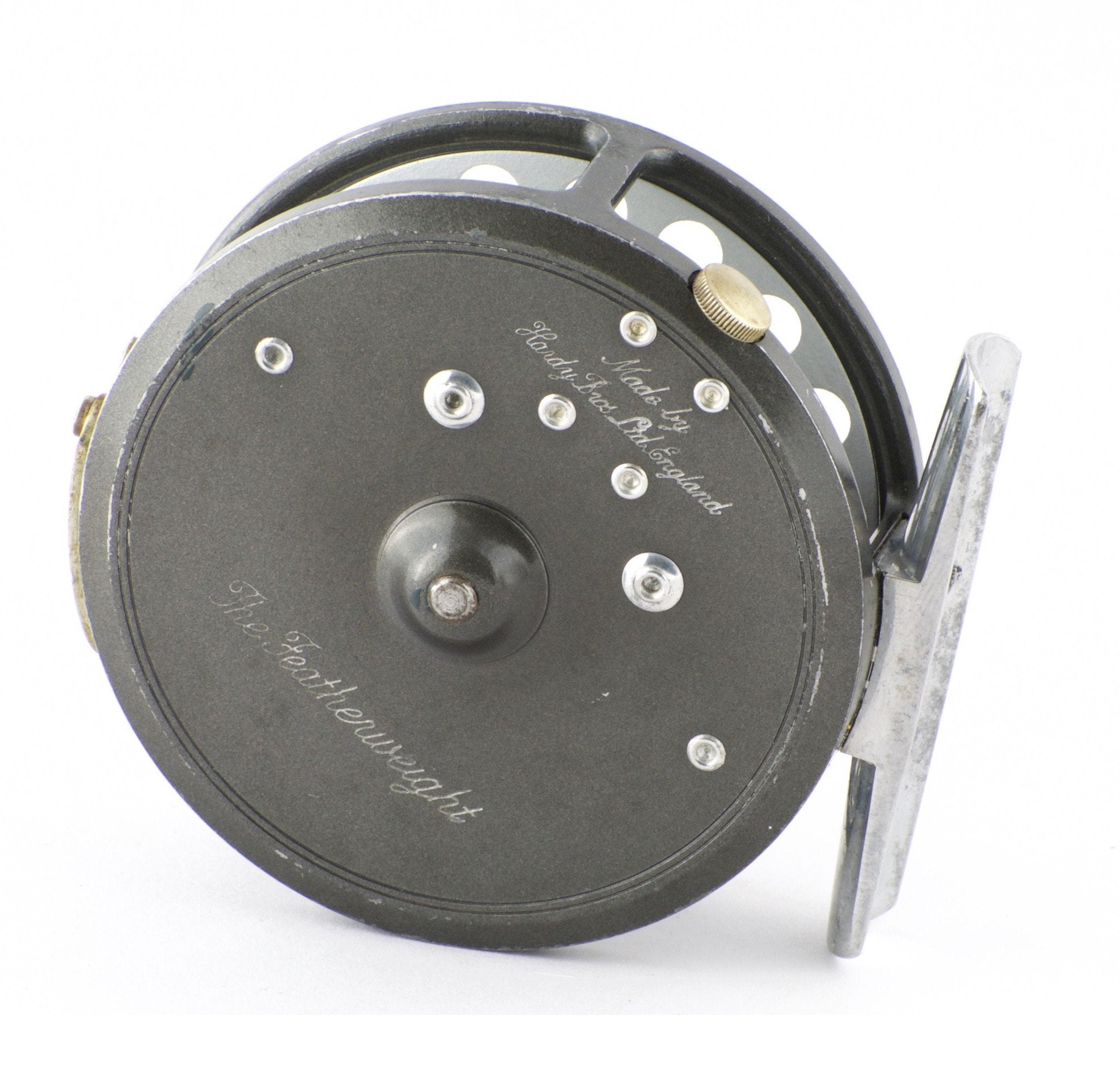 For sale here is a Hardy Featherweight fly reel and spare spool. Smooth alloy foot. Two-screw latch plate with a heavy-duty and reversible two-screw U-shaped nickel silver line guard. RHW or LHW. The tensioner works perfectly. A nice fishing reel with minor signs of use, plus some bonus engraving on the reel foot...."HCH Floater", which may be able to be buffed out. Comes with the original cream and red Hardy zippered case. The spare spool appears to be in unused condition.