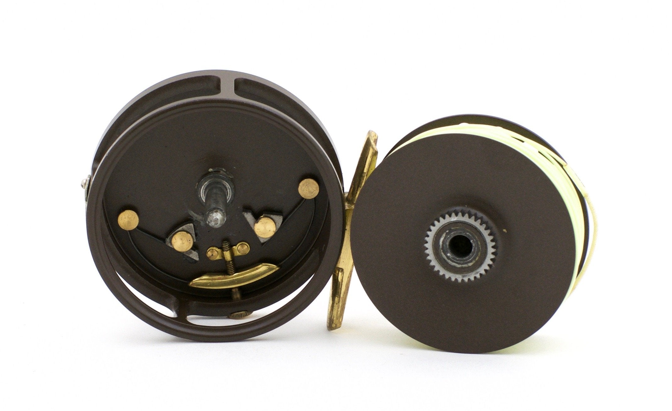 For sale here is a Hardy Golden Featherweight fly reel. Two-screw latch plate with a reversible single screw nickel silver line guide. RHW or LHW. The reel functions perfectly. Excellent+ used condition. Capacity is DT4+40 or DT5+15.