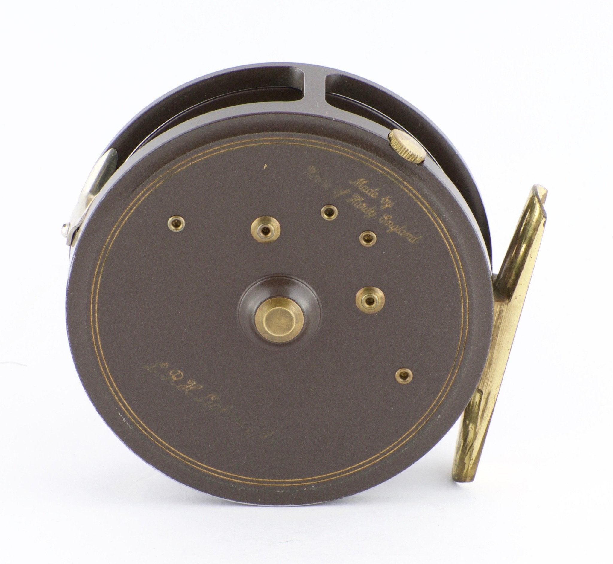 For sale here is a Hardy Golden LRH Lightweight fly reel. 3 1/8" diameter. Hardy zippered case, box, and papers included. The reel remains in excellent used condition. Can be fished LHW or RHW. Reversible single screw line guard.