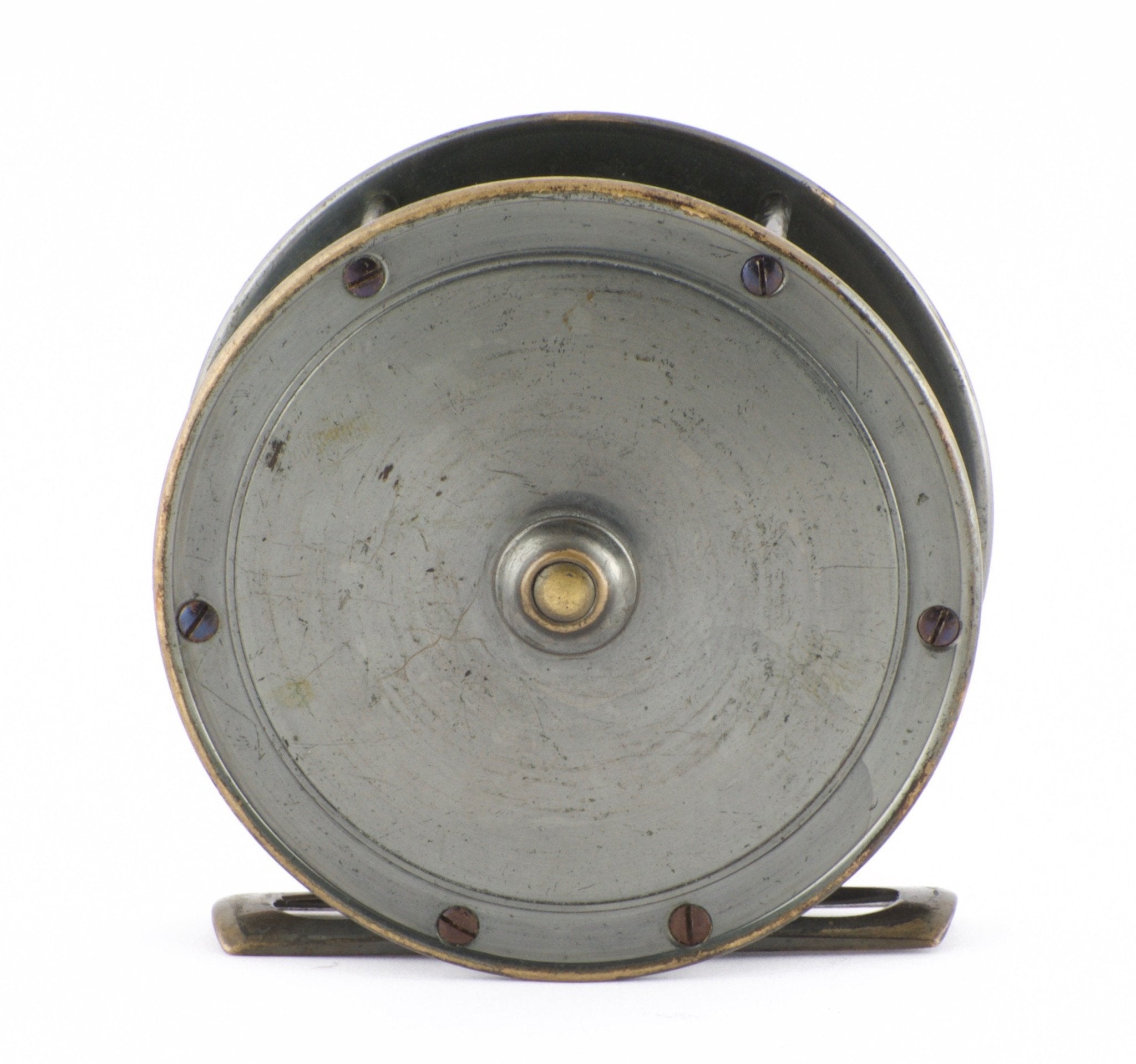 For sale here is a fine example of a 3" Hardy Hercules fly reel. Nice bronzed finish in outstanding condition. Winds smoothly and has a strong click. Unaltered foot (waisted and pierced) and nice ivory handle that spins freely (slight indentation in the grasp, as shown in photos).