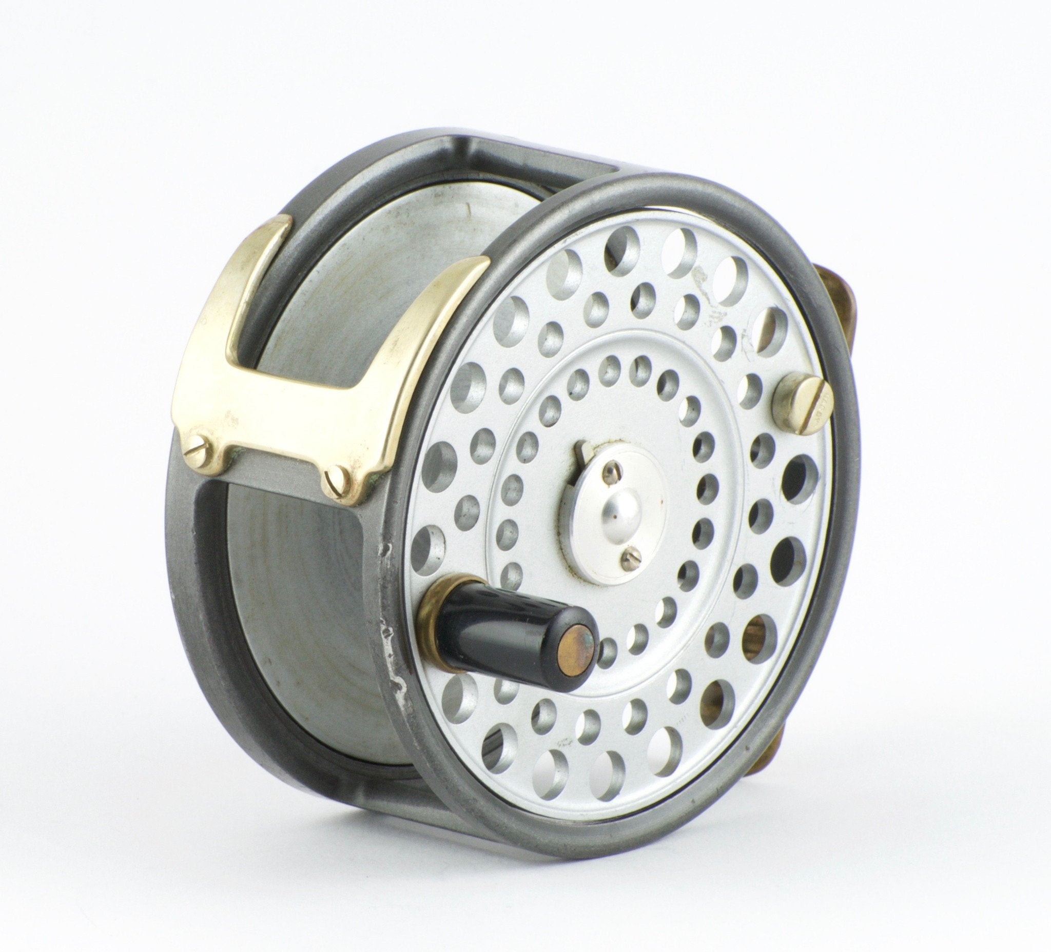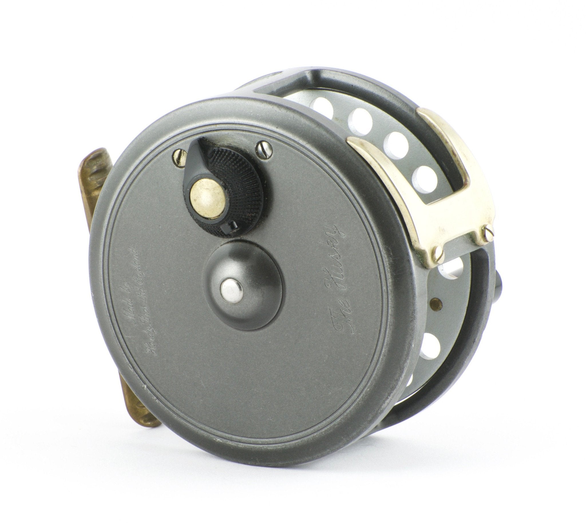 For sale here is a Hardy Husky fly reel in excellent condition. Left hand retrieve. Silent adjustable check. A couple minor dings to the rim as shown in photo #4. The Husky was part of Hardy's Lightweight Series of reels. This was one of two wide drum Lightweight models made in the mid to late 1960s, the Zenith being the other. Both were 3 3/8" diameter. 1 1/8" spool width. The reel weighs ~ 8 oz. Capacity is up to a WF9 plus 200 yards of 20# backing. Comes with original zippered Hardy case.