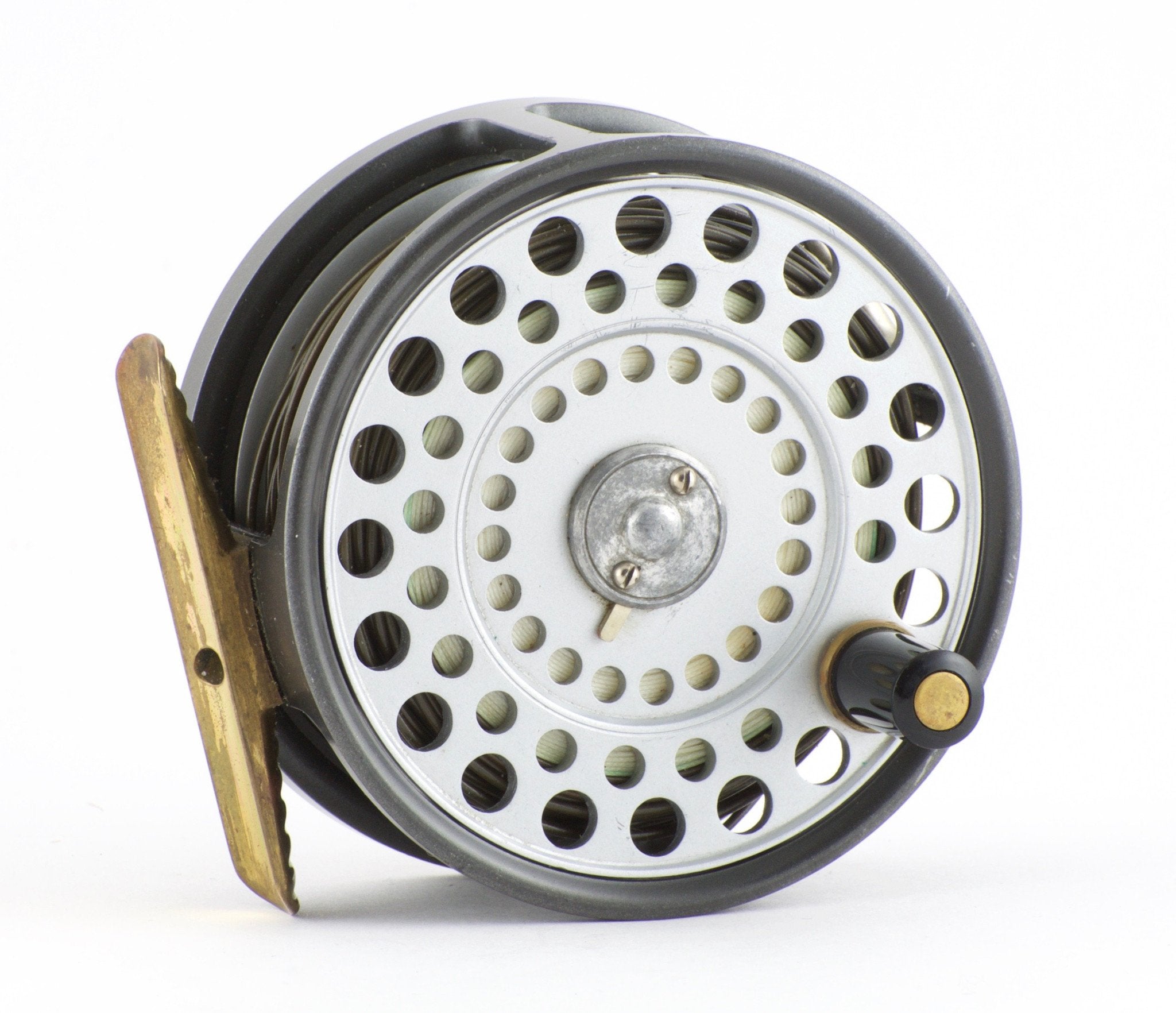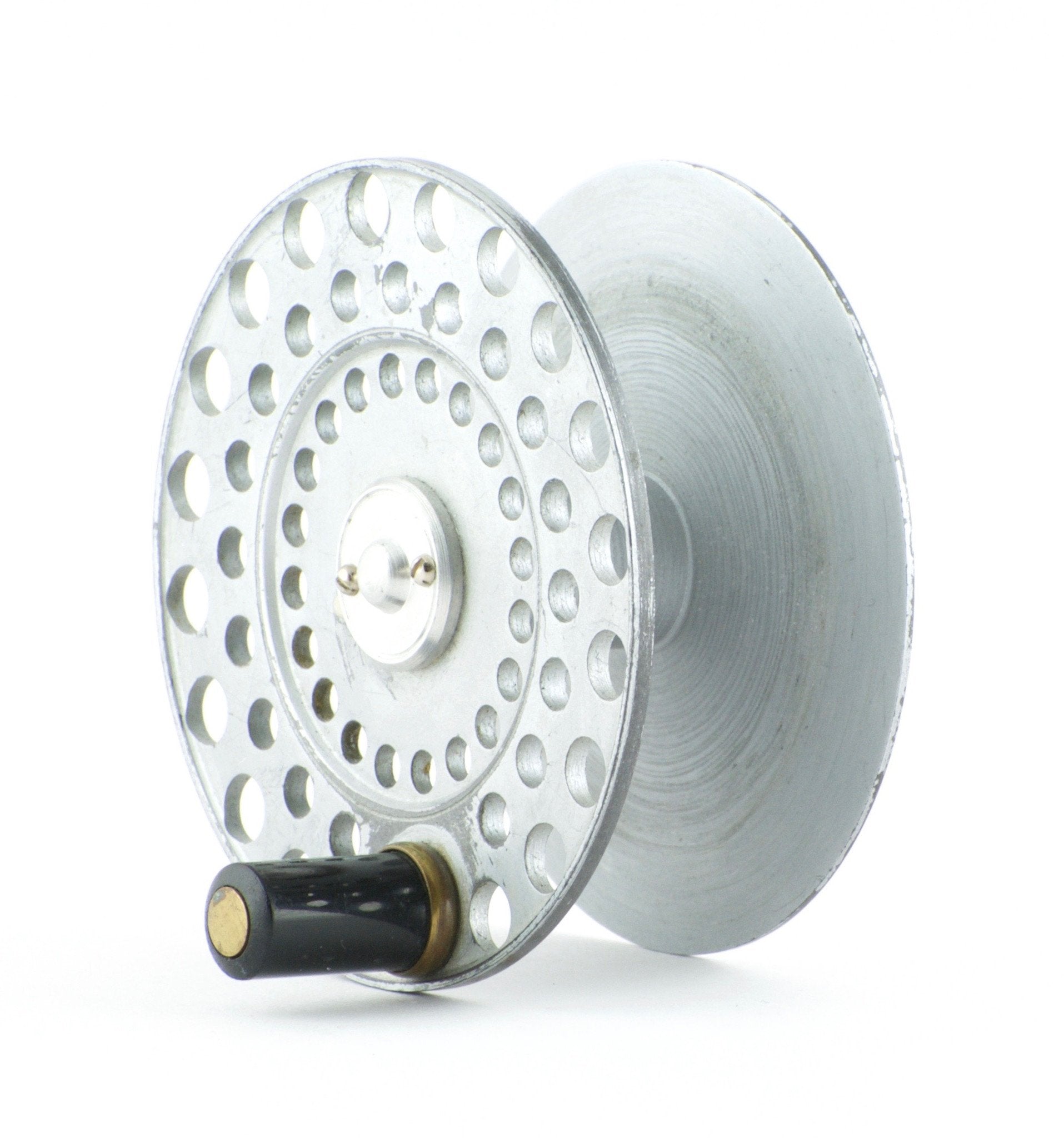 For sale here is a Hardy Husky fly reel and spare spool in excellent condition. Right hand retrieve. Silent adjustable check. The Husky was part of Hardy's Lightweight Series of reels. This was one of two wide drum Lightweight models made in the mid to late 1960s, the Zenith being the other. Both were 3 3/8" diameter. 1 1/8" spool width. The reel weighs 7.85 oz. Capacity is up to a WF9 plus 200 yards of 20# backing. Comes with original zippered Hardy case and comes loaded with line and backing.