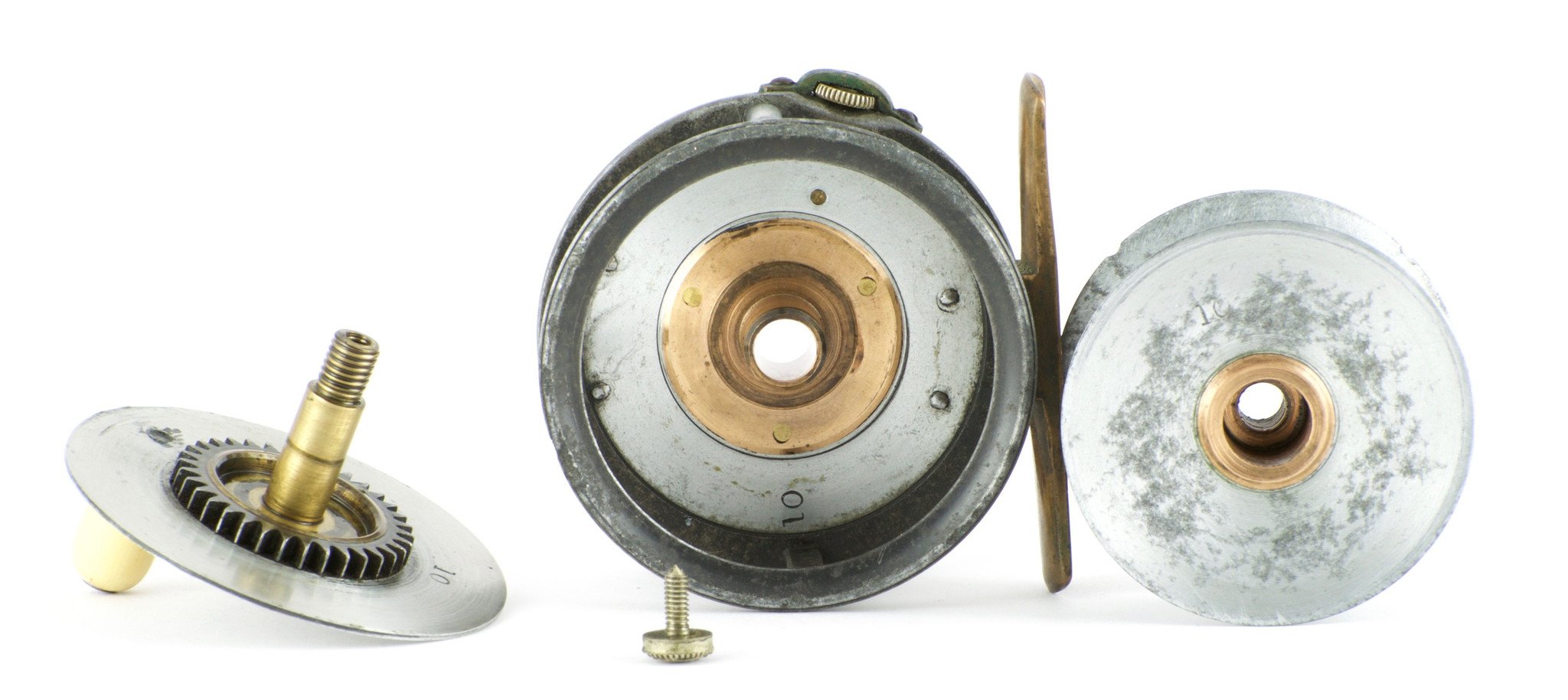 For sale here isa scarce alloy 2 1/2" Hardy Wide DrumPerfect with 1896 check. All original with matching "10"s throughout. Aluminium face plate with rod in hand and straight line logos.Rarely does one find an alloy Perfect like this with the rod in hand logo. Full length foot and strapped tension adjuster. The frame remains structurally sound with no cracks. There is some rim rash however.