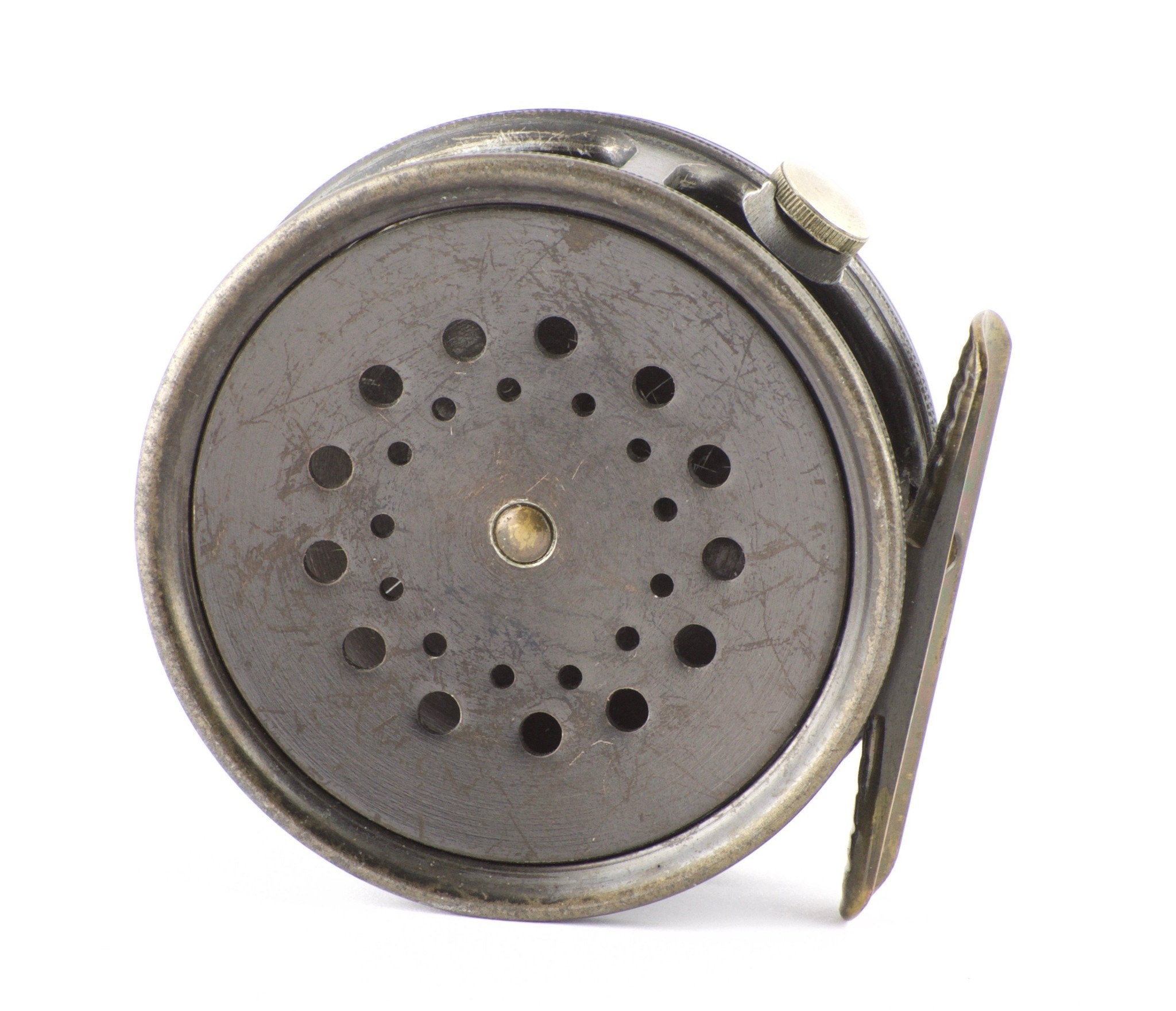 For sale here is a 2 7/8" Hardy Perfect with Duplicated MKII check. Full length and unaltered ribbed brass foot. The ebonite handle spins freely. Rim tensioner works perfectly. No cracks or corrosion. No line burns. The majority of the reel's original leaded finish remains. A very nice example!